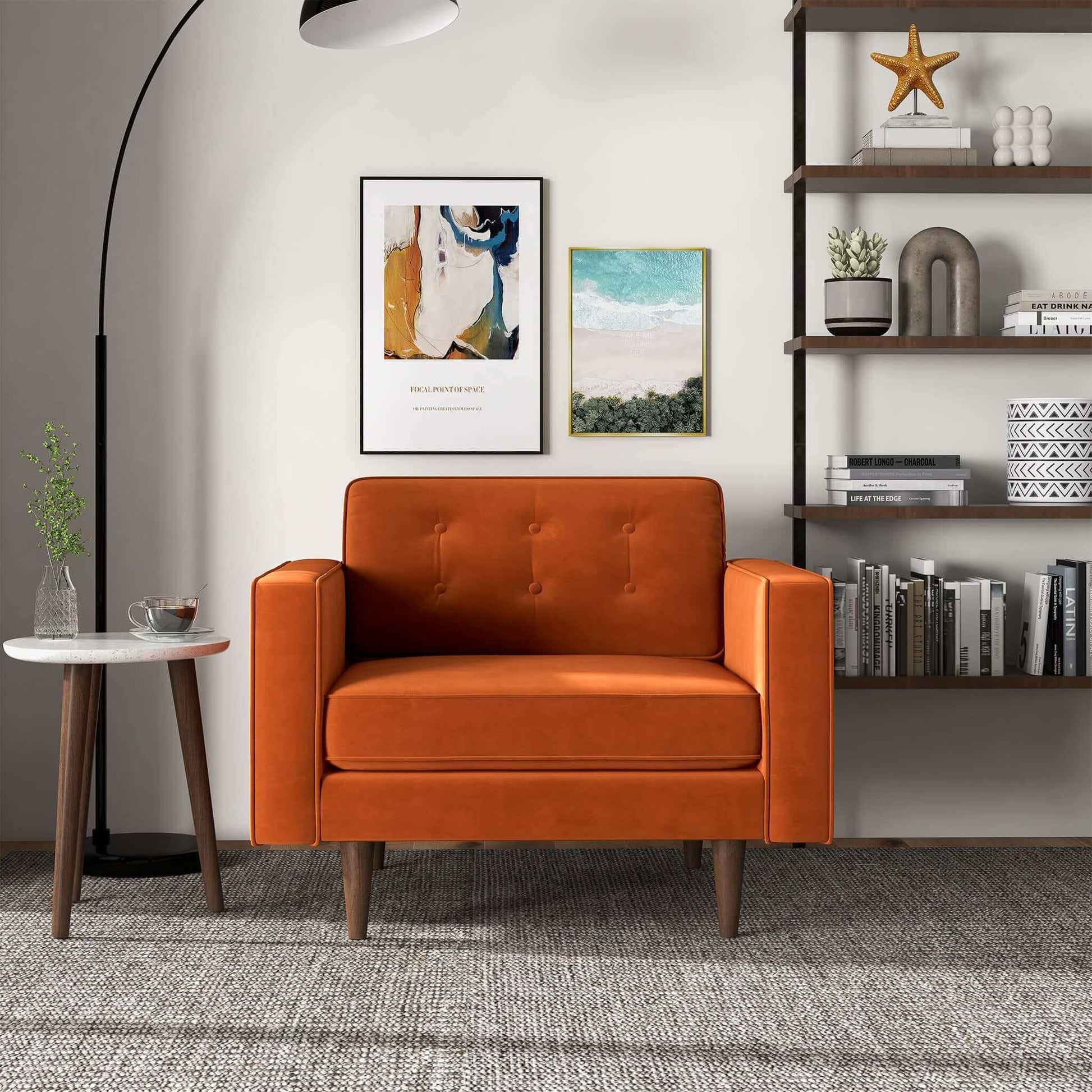 Make a statement in your living room with this mid-century-inspired Casey Mid-Century Modern velvet lounge chair. Founded atop four walnut-finished legs, this piece is crafted with a solid wood frame and high-density foam padding, which lends comfort to the seat. It can be cleaned with a non-abrasive cleaning solution followed by a quick wipe with a microfiber cloth. The removable legs allow for simple delivery in tight spaces. Available in a variety of timeless colors, you're sure to find something that matches your decor.