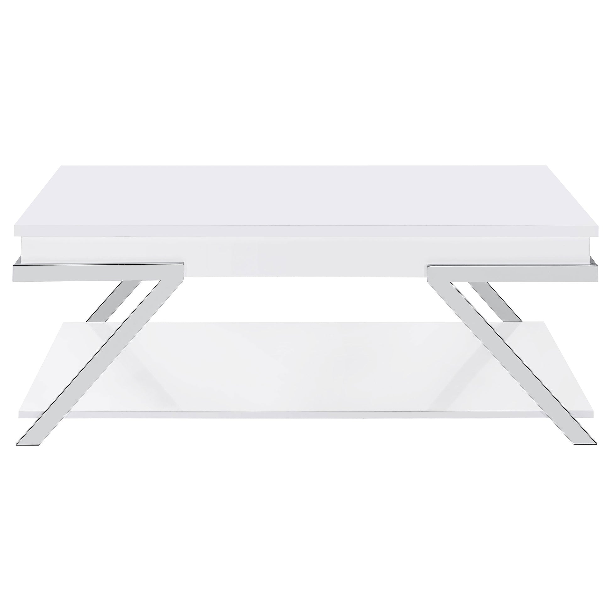 Capture the stylish, inspired look of effortless design suited to modern spaces. This ultra-contemporary lift-top coffee table made of white high gloss finish MDF with paper coating creates a stir in your laid-back living room or family room. Angular metal framing adds a fresh aesthetic boost. A modular-like configuration works well in today’s trending spaces as this table features a lift-top mechanism to reveal extra hidden storage and allow its top to inch closer to you. Seek a seamless contemporary attitude with this stylish coffee table.