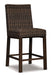 Turn your backyard space into your own piece of paradise with this outdoor dining set. Though the fire pit table looks remarkably like wood, it’s made of sturdy, rust-proof aluminum that’s perfectly suited for alfresco living. Enhancing the rustically refined aesthetic: side panels accented with all-weather, handwoven resin wicker. With the press of a button, ignite a flickering flame that dances over a bed of glass beads. The matching bar stools are pretty enough for trendy interiors, yet durable enough to weather the elements.