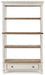 Elevating the art of traditional cottage styling, this bookcase is your heavenly home office realized. Antiqued two-tone aesthetic blends a chipped white with a distressed wood tone top for added charm. Clever balance of shelf and drawer space beautifully works.| Full Dimension | 45W x 16D x 74H |