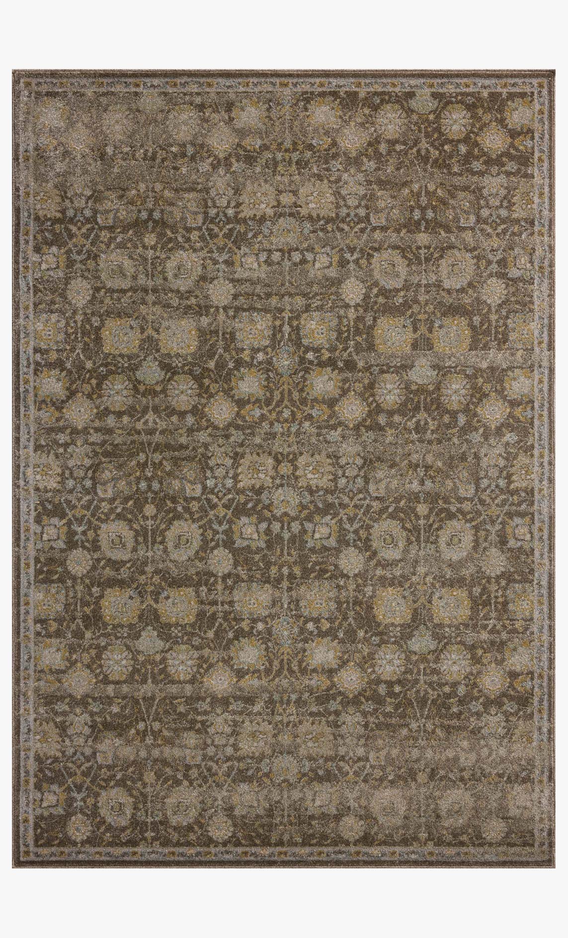 The Mona Collection by Magnolia Home by Joanna Gaines x Loloi is a power-loomed area rug with a framed design featuring traditional motifs and medallions in muted palettes. This collection is made of easy-to-care-for polypropylene and polyester in Egypt and OEKO-TEX certified, ensuring its materials don't contain harmful substances.