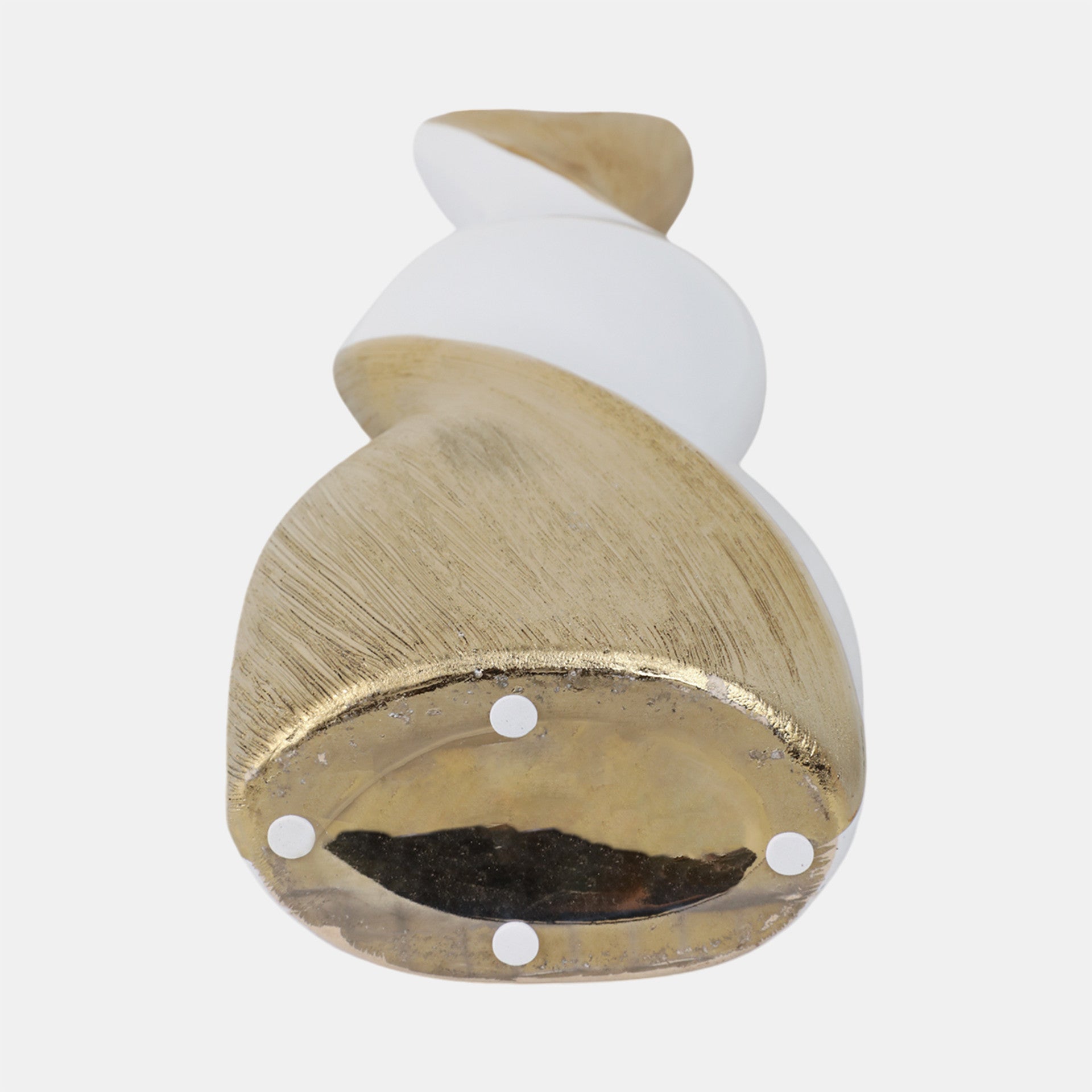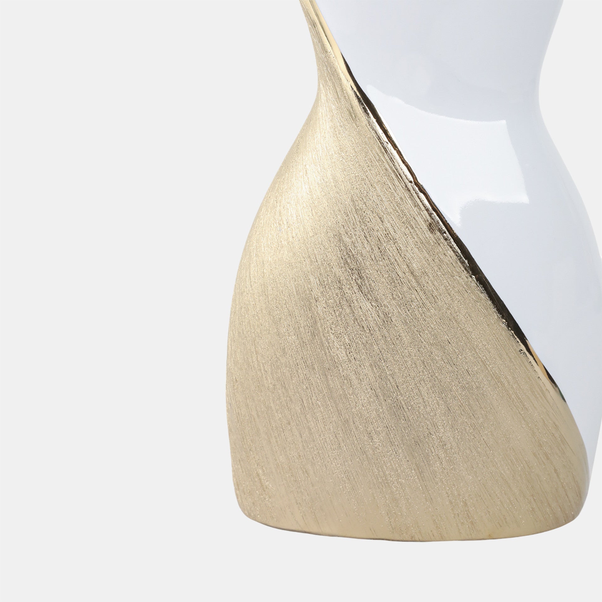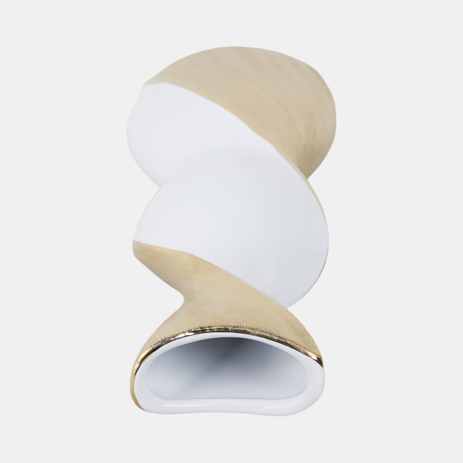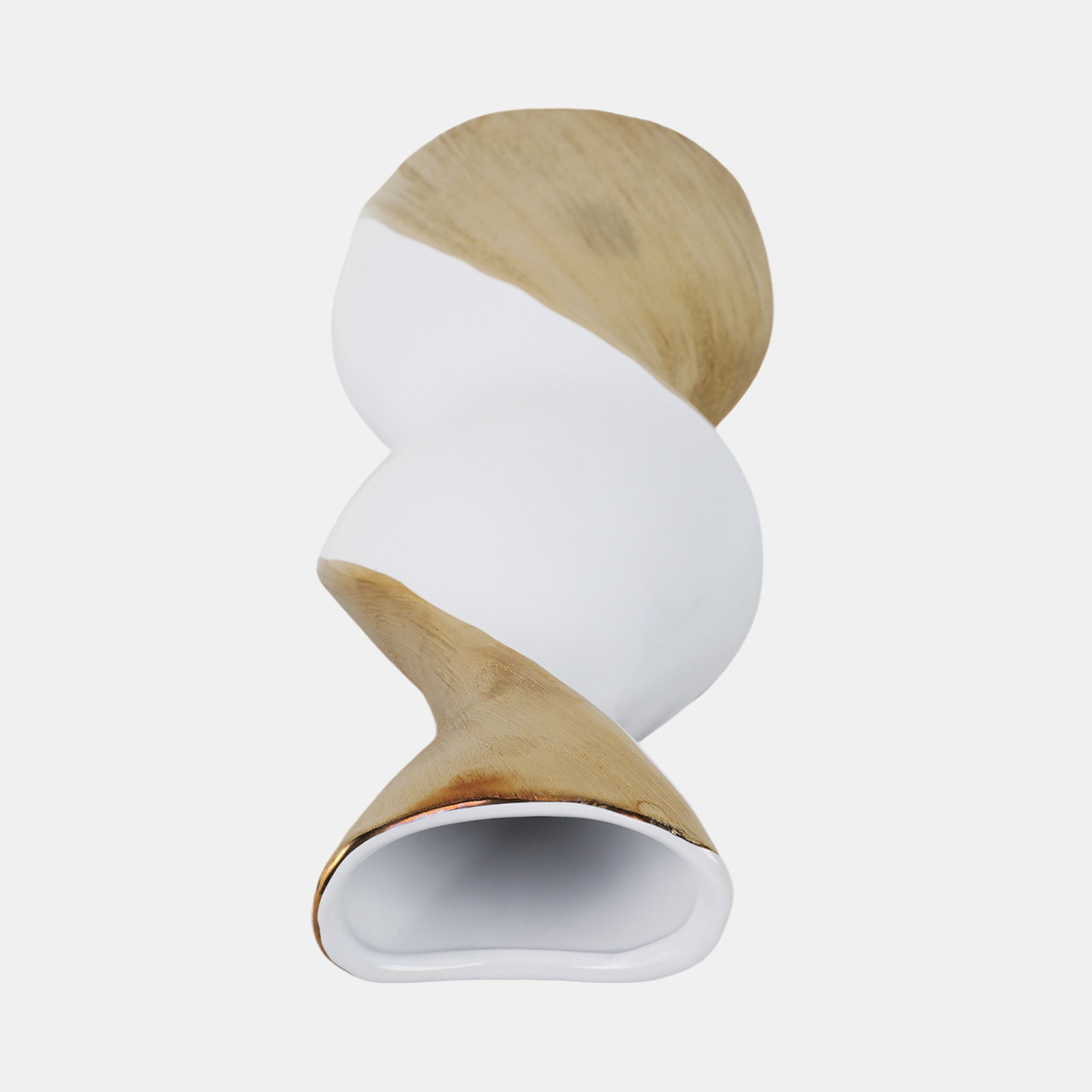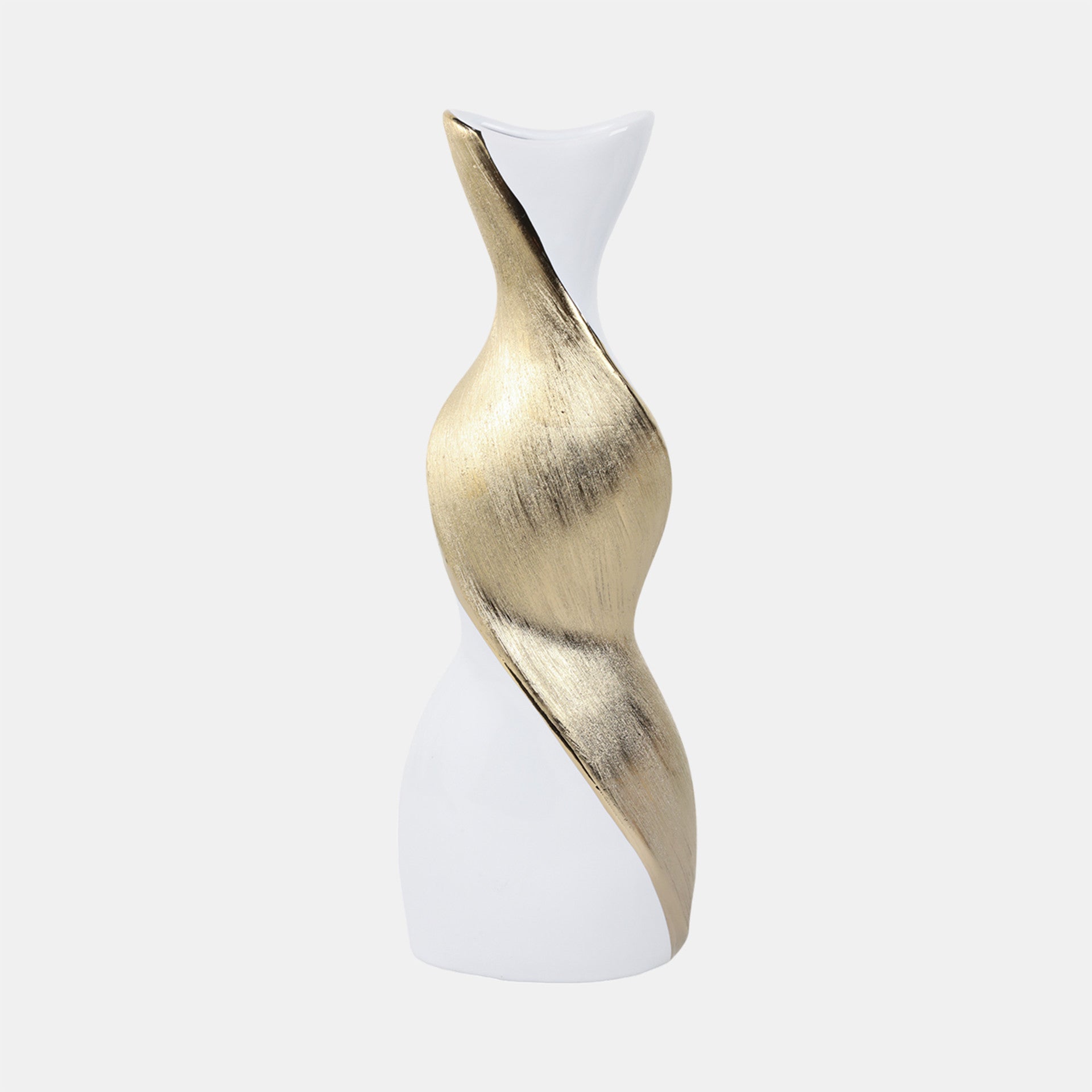 Dale un toque de color a tu hogar con este precioso jarrón de cerámica. Con sus 50 cm, este jarrón de alta calidad viene en una magnífica combinación de blanco y dorado suave. Su sencilla paleta de colores lo convierte en el complemento decorativo perfecto para una variedad de estilos. Su sencillo y hermoso colorido se realza con un diseño único de espirales. Crea tu propio centro de mesa con tus flores o plantas favoritas. También quedará perfecto como detalle decorativo en cualquier mesa de centro, repisa, estante o escritorio.