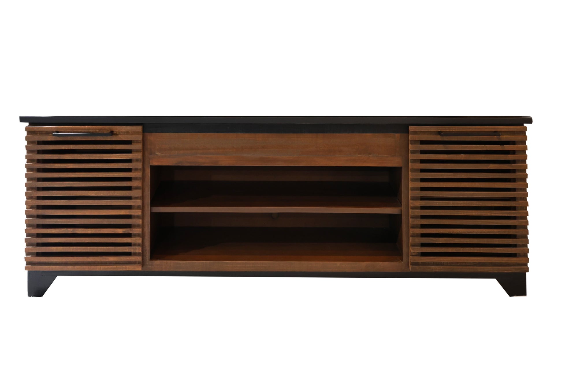 El mueble para TV Santiago de 86" combina un diseño moderno con un almacenamiento funcional, disponible en una llamativa combinación de colores Loveland y negro. Su generoso tamaño permite colocar televisores grandes, lo que lo convierte en el punto focal perfecto para cualquier espacio contemporáneo.