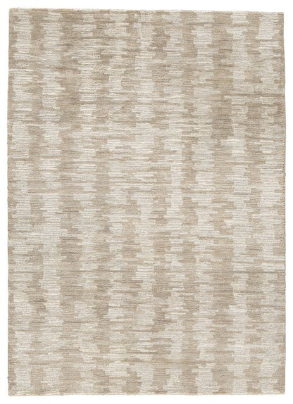 El diseño moderno de esta alfombra, tejida a mano, destacará con fuerza en cualquier habitación. Al alternar el flujo del patrón, los tejedores han creado una obra de arte llena de textura. Tonos crema y marrón se combinan para crear una sensación abstracta pero a la vez serena.| Dimensión completa | 5 de ancho x 7 de profundidad |