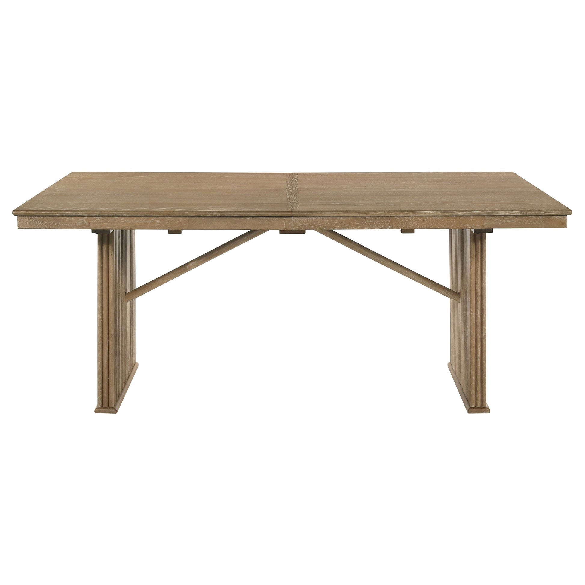 Esta mesa de comedor con acabado almendra perlada combina elegancia moderna con texturas naturales. Fabricada con chapa de roble, madera dura asiática y madera de ingeniería, la mesa luce un diseño robusto y elegante. La base presenta llamativos paneles laterales verticales estriados que aportan un toque de textura y atractivo visual. Diseñada tanto para comidas íntimas como para reuniones más grandes, la mesa incluye una hoja extensible para ofrecer una variedad de asientos. Sus líneas limpias y su base única la convierten en la pieza central perfecta para comedores contemporáneos.