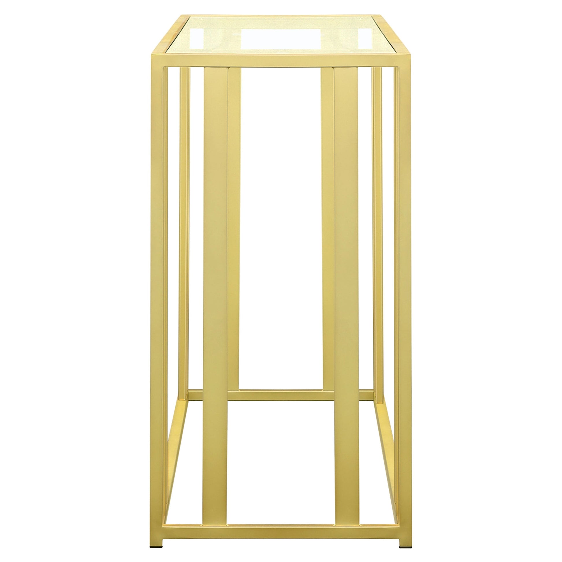 Esta moderna consola rectangular presenta un tablero de vidrio templado transparente y una base geométrica de metal de gran espesor con un elegante acabado galvanizado. Su diseño abierto crea una estética contemporánea que ofrece elegancia y durabilidad. Ideal para colocar en entradas, pasillos o detrás de sofás, esta consola ofrece una amplia superficie para exhibir decoración u organizar objetos esenciales. Sus materiales resistentes a los arañazos garantizan una calidad duradera y un fácil mantenimiento.