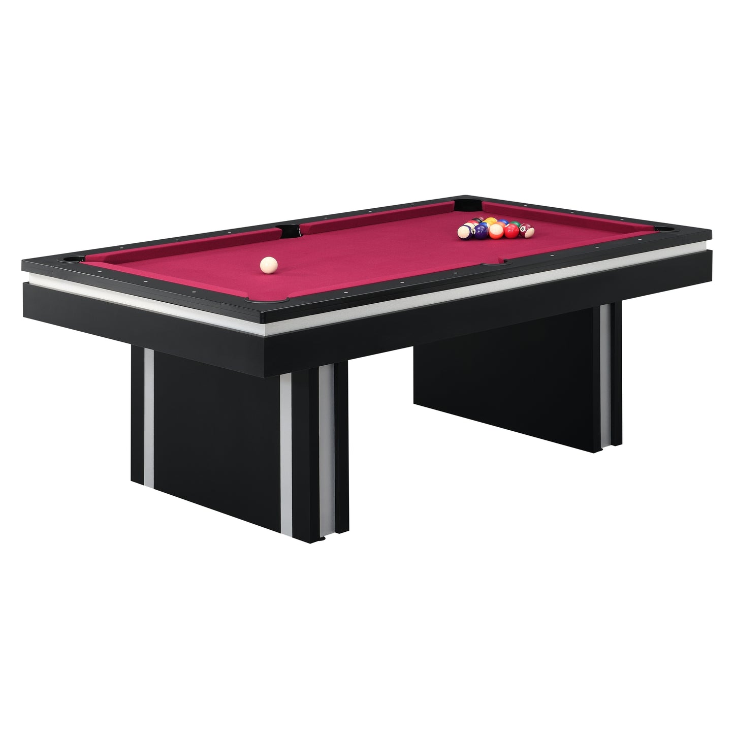 La mesa de billar Ajax es la pieza central de su sala de juegos. Está fabricada con chapa laminada negra que la rodea y presenta detalles de una franja laminada blanca que le da un aspecto moderno. Un toque más sofisticado, el fieltro burdeos le da un toque moderno al fieltro verde estándar. Seis troneras moldeadas alinean el borde exterior de la mesa para facilitar el juego. Incluye un juego de bolas de billar, una bola blanca, un cepillo de fieltro y un triángulo de almacenamiento. ¡Invita a tu familia y amigos a una emocionante partida de bola ocho!