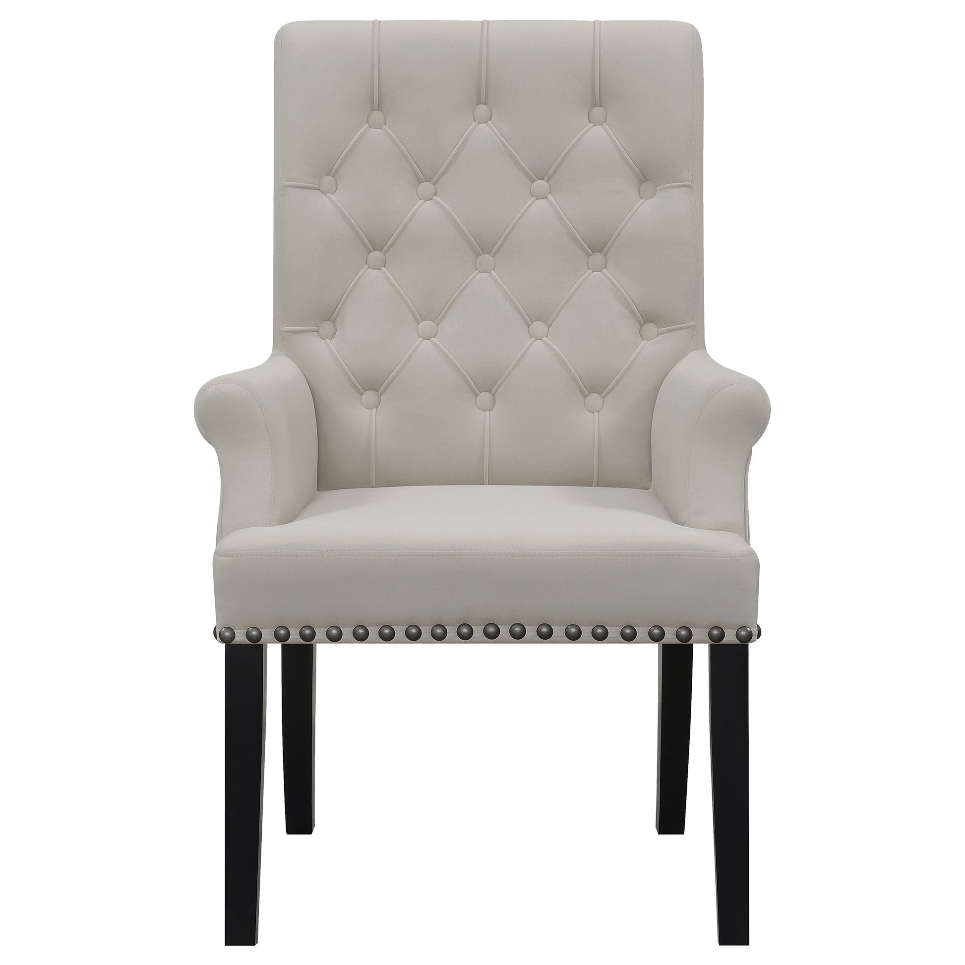 Diseñado para ofrecer lujo y soporte, este sillón aporta una presencia elegante a cualquier comedor. Su respaldo alto capitoné y su tablero enrollado le confieren una estética atemporal, mientras que los reposabrazos acolchados aumentan la comodidad. Los detalles de tachuelas aplicados a mano le dan un sofisticado toque final, complementando la silueta a medida del sillón. Su asiento generosamente acolchado y sus robustas patas garantizan durabilidad y un confort duradero, convirtiéndolo en una opción ideal tanto para cenas formales como para el día a día.