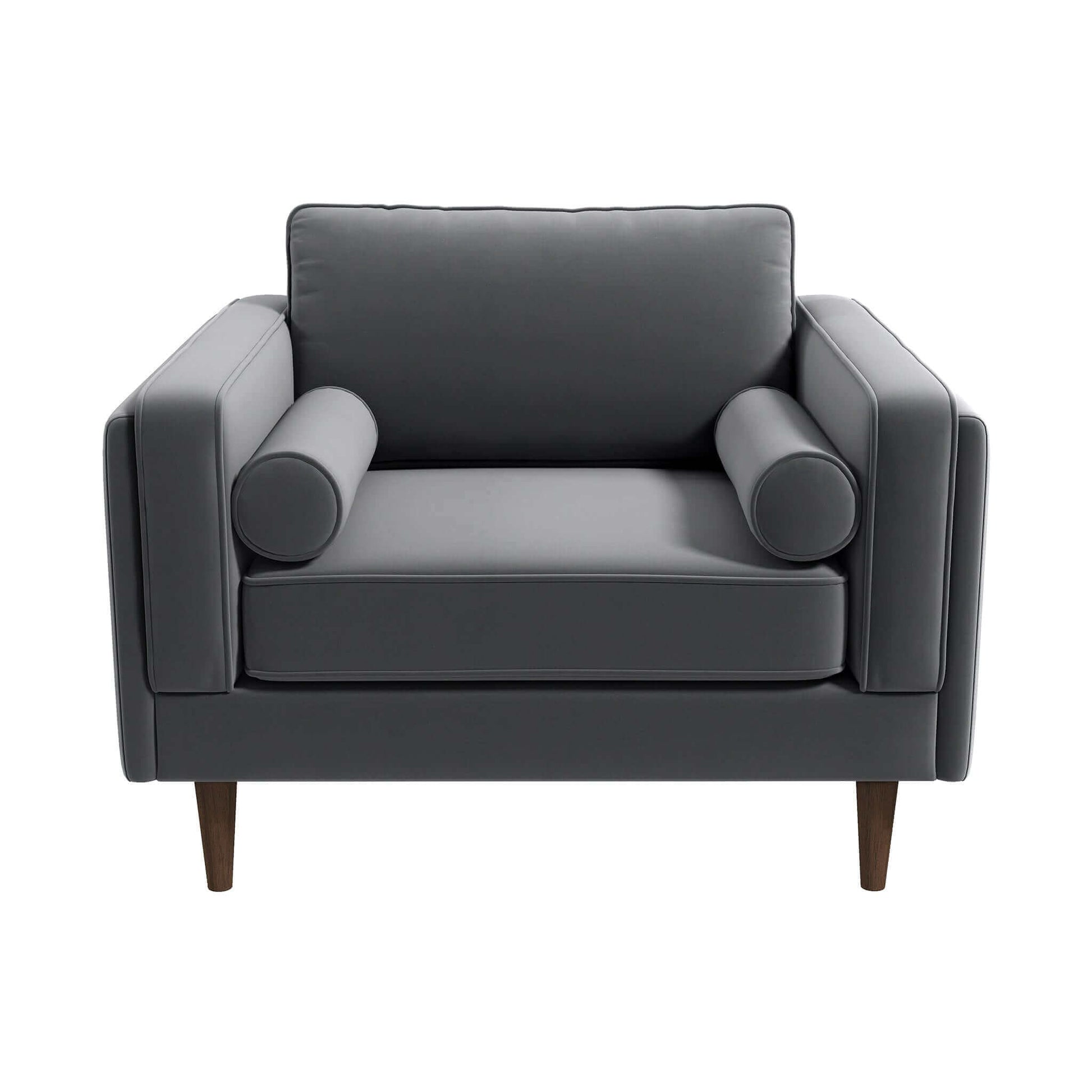 Añade un espacio extra a tu estudio o sala de estar para disfrutar de noches de cine o realza el conjunto de tu suite principal con el Sillón Amber de estilo moderno de mediados de siglo. Con cuatro patas con acabado en nogal, esta pieza está fabricada con una estructura de madera maciza y acolchado de espuma de alta densidad, lo que le aporta comodidad al asiento. Tapizada en terciopelo y tela resistentes y de alta calidad, esta elegante pieza cuenta con elegantes brazos cuadrados y un cojín de respaldo completamente acolchado para un excelente soporte. Se limpia con una solución de limpieza no abrasiva y luego con un paño de microfibra. Las patas extraíbles facilitan su transporte en espacios reducidos. Disponible en una variedad de colores atemporales, seguro que encuentras algo que combine con tu decoración.