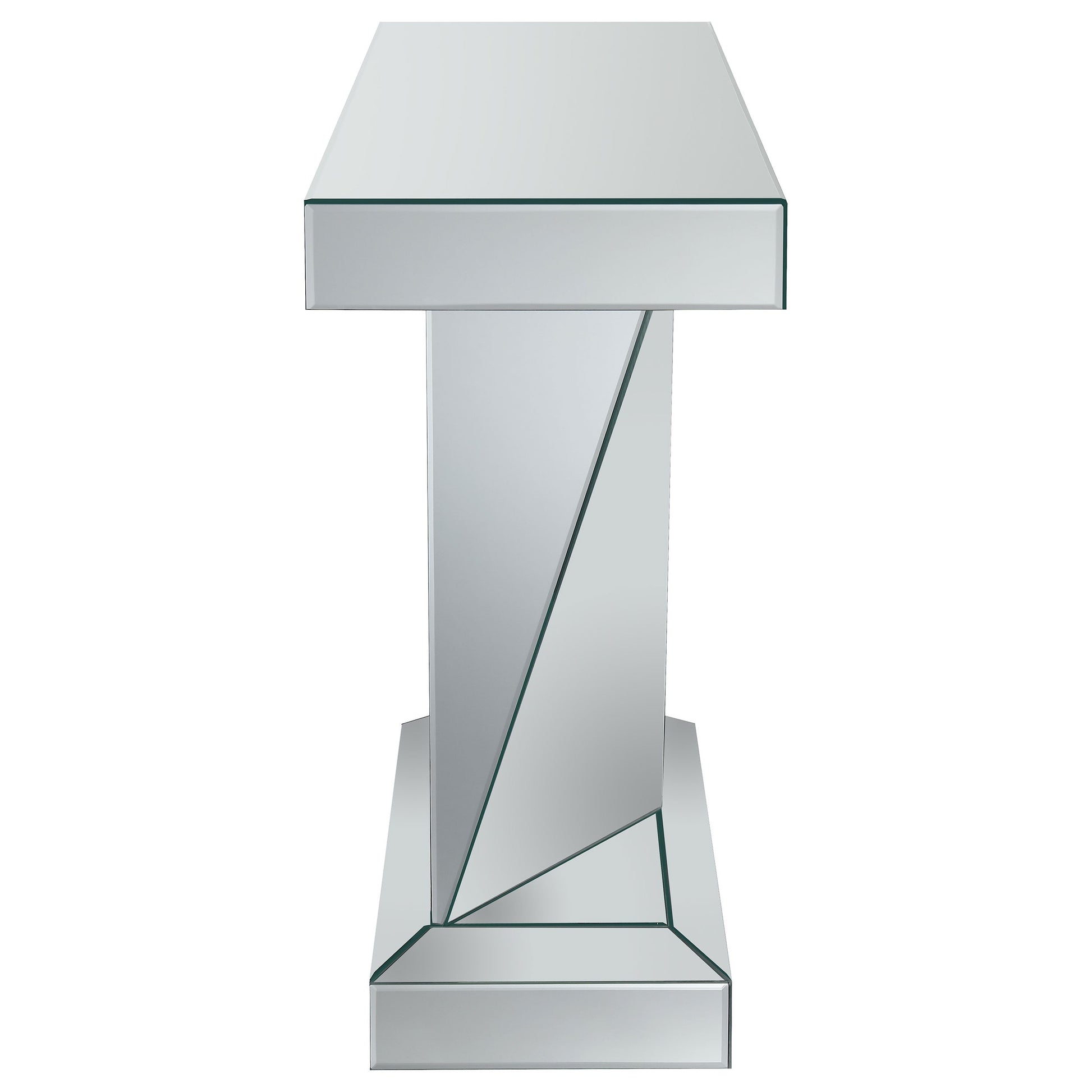 Esta consola con espejo presenta un elegante diseño rectangular con una base geométrica audaz. La incrustación triangular está adornada con cristales acrílicos, lo que realza su atractivo moderno. Fabricada con superficies de espejo, la consola ofrece un aspecto sofisticado que refleja la luz con belleza, aportando elegancia a cualquier habitación. Fabricada con materiales duraderos, proporciona una base robusta, mientras que sus líneas limpias crean un punto focal llamativo en su hogar.