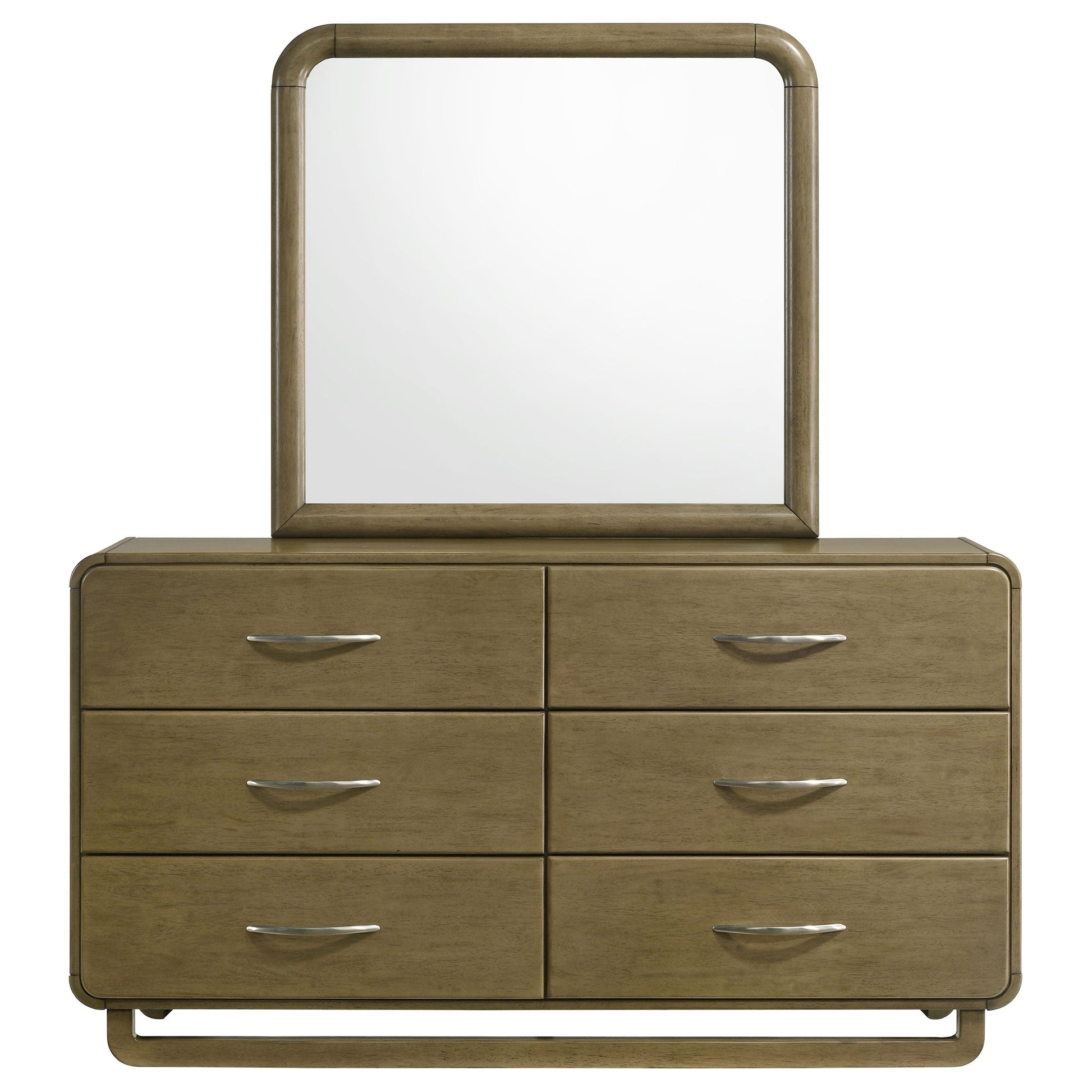 Este conjunto de cómoda y espejo combina un diseño moderno con un práctico sistema de almacenamiento, creando una solución completa y elegante para tu dormitorio. La cómoda de seis cajones, con un cálido acabado en madera de nogal moscada, ofrece amplio espacio para tus objetos esenciales, mientras que el espejo a juego realza la habitación con luz y profundidad. Las guías metálicas de extensión garantizan una apertura suave de los cajones, facilitando el acceso a tus pertenencias. Las esquinas redondeadas y los herrajes de níquel mate aportan un toque contemporáneo a ambas piezas, convirtiéndolas en la combinación perfecta para cualquier dormitorio moderno. Fabricado con madera maciza asiática, este conjunto está hecho para durar.