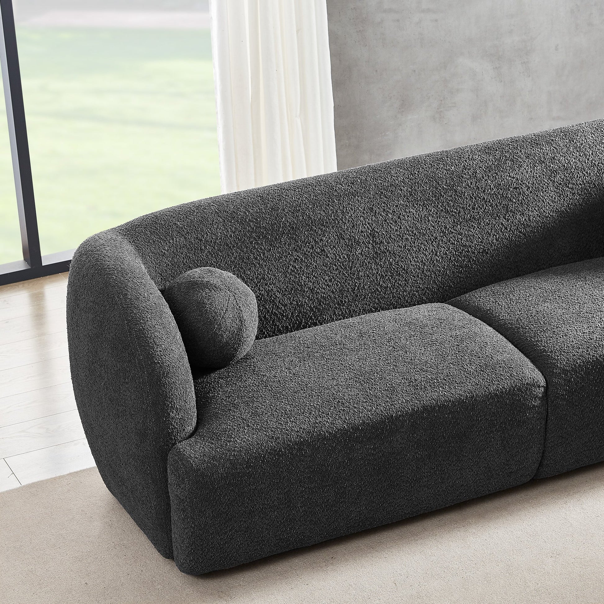 Transforma tu sala de estar en un espacio acogedor y acogedor con este elegante sofá capitoné. Fabricado con espuma de alta densidad y artesanía de primera calidad, este sofá de bouclé francés es perfecto para recibir invitados o disfrutar de momentos en familia. Su resistente construcción garantiza que será la pieza central de tu sala, estudio, apartamento, loft urbano o condominio. La tela es fácil de limpiar con un paño de microfibra, y las patas desmontables de madera maciza de nogal facilitan su traslado a espacios reducidos. Con su cómoda, asequible y duradera tela de bouclé, este sofá es perfecto para el uso diario y de fácil montaje.