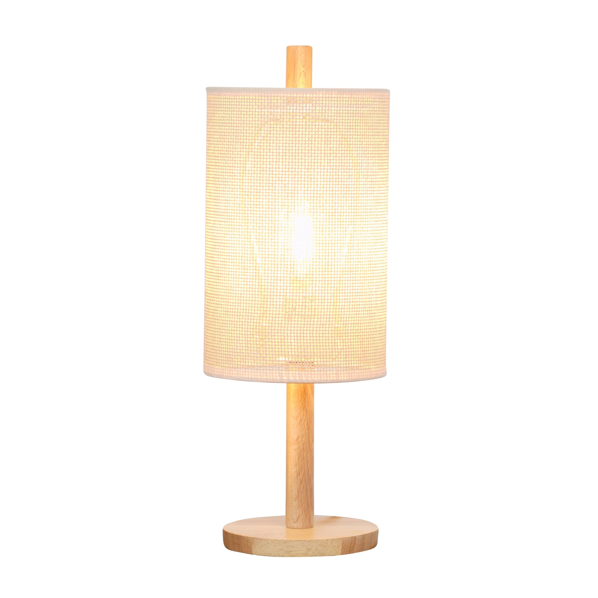 Dale un toque natural a tu hogar con esta elegante lámpara de mesa de madera. Su diseño minimalista presenta una base de madera natural combinada con una pantalla cilíndrica de tela tejida, creando un ambiente cálido y acogedor. Perfecta para mesas auxiliares, mesitas de noche o escritorios, esta lámpara se integra a la perfección con estilos de decoración bohemios, rústicos o modernos. Realza tus espacios con esta lámpara atemporal.