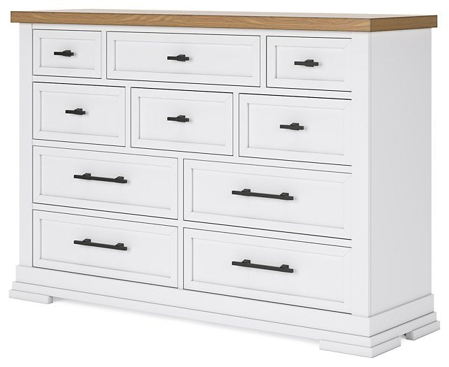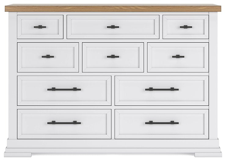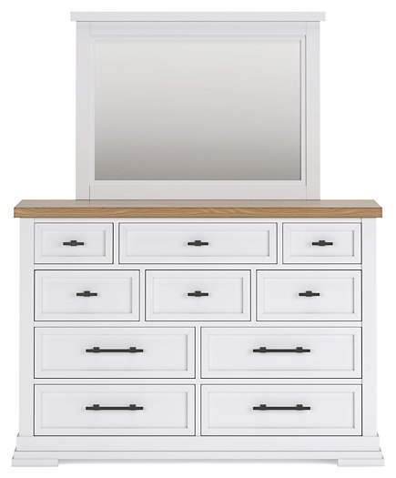 Estilo informal con esencia. Esta cómoda bicolor con espejo eleva el nivel de comodidad y confort en tu santuario de tranquilidad. Su silueta robusta con un acabado blanco clásico y herrajes metálicos negros le da un aire rústico moderno. La encimera de chapa de roble estilo carnicero le aporta una estética relajada. Y esta pieza, cuidadosamente seleccionada, es lo suficientemente espaciosa como para guardar todos tus objetos esenciales.| Dimensión completa | 63,75 ancho x 19,25 profundidad x 78,25 alto |