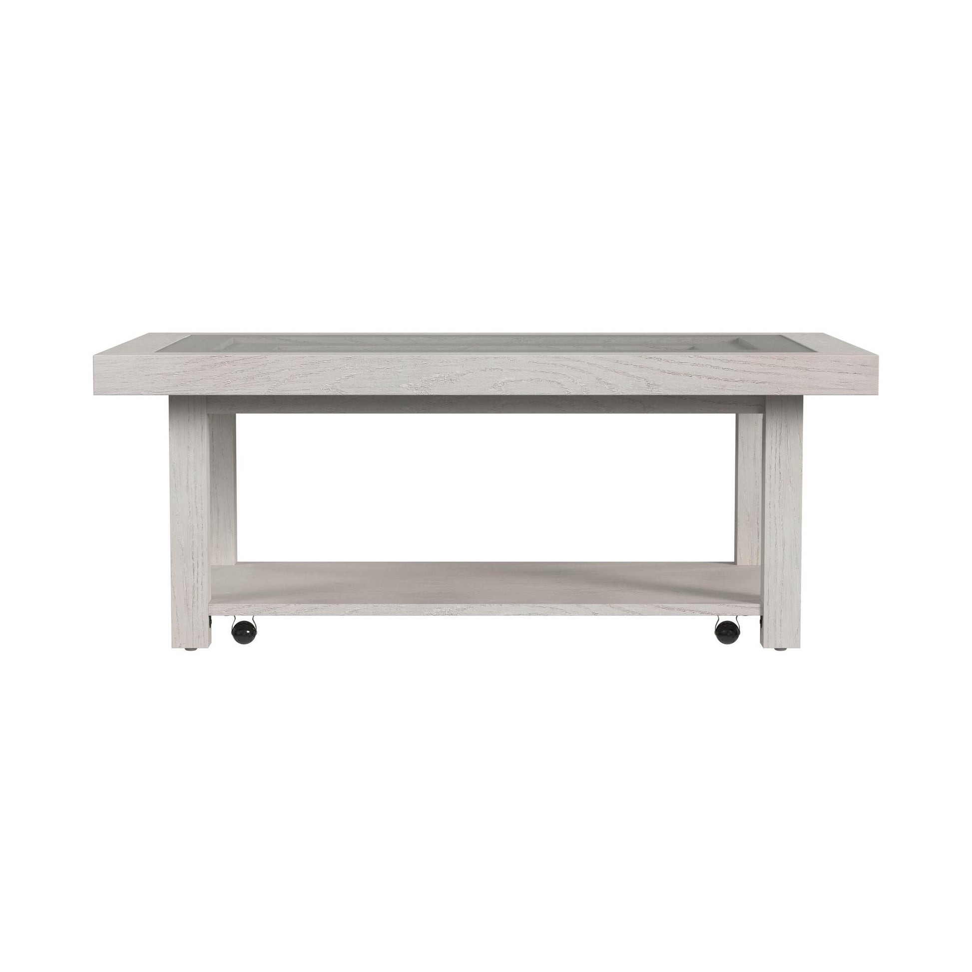Define your living space with the transitional style of the Avalanche Coffee Table. Accented with glass that reveals rhythmic, geometric carvings, the tabletopÕs broad surface is complemented by an equally spacious open shelf, extending your storage and display options. Casters designed to protect flooring and ease movement when repositioning the table rest under this piece, while construction of quality solid and engineered wood both mark thoughtful design. For a sleek and stylish addition to your home, the Avalanche Coffee Table delivers in quality and design.