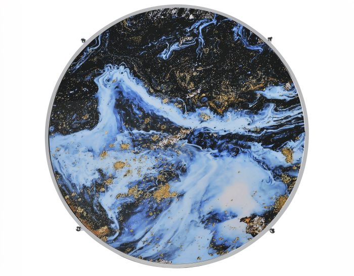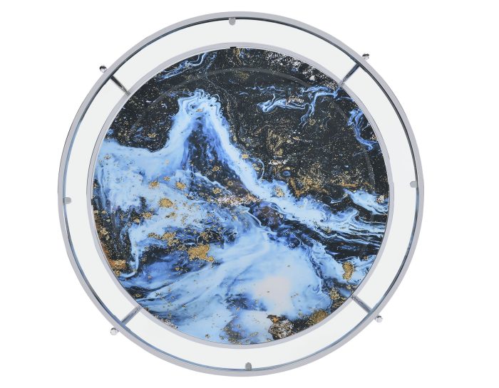Versatilidad de diseño sin precedentes ahora disponible con la mesa de cóctel reversible Averie. Su innovador diseño permite intercambiar los paneles superior e inferior, ofreciendo dos estilos distintos: un tablero transparente con base de imitación mármol o un tablero de imitación mármol con base de cristal transparente. Con una estructura cromada, esta mesa se convertirá en el centro de atención con su imitación mármol azul, su cromo brillante y su forma redondeada y fluida.