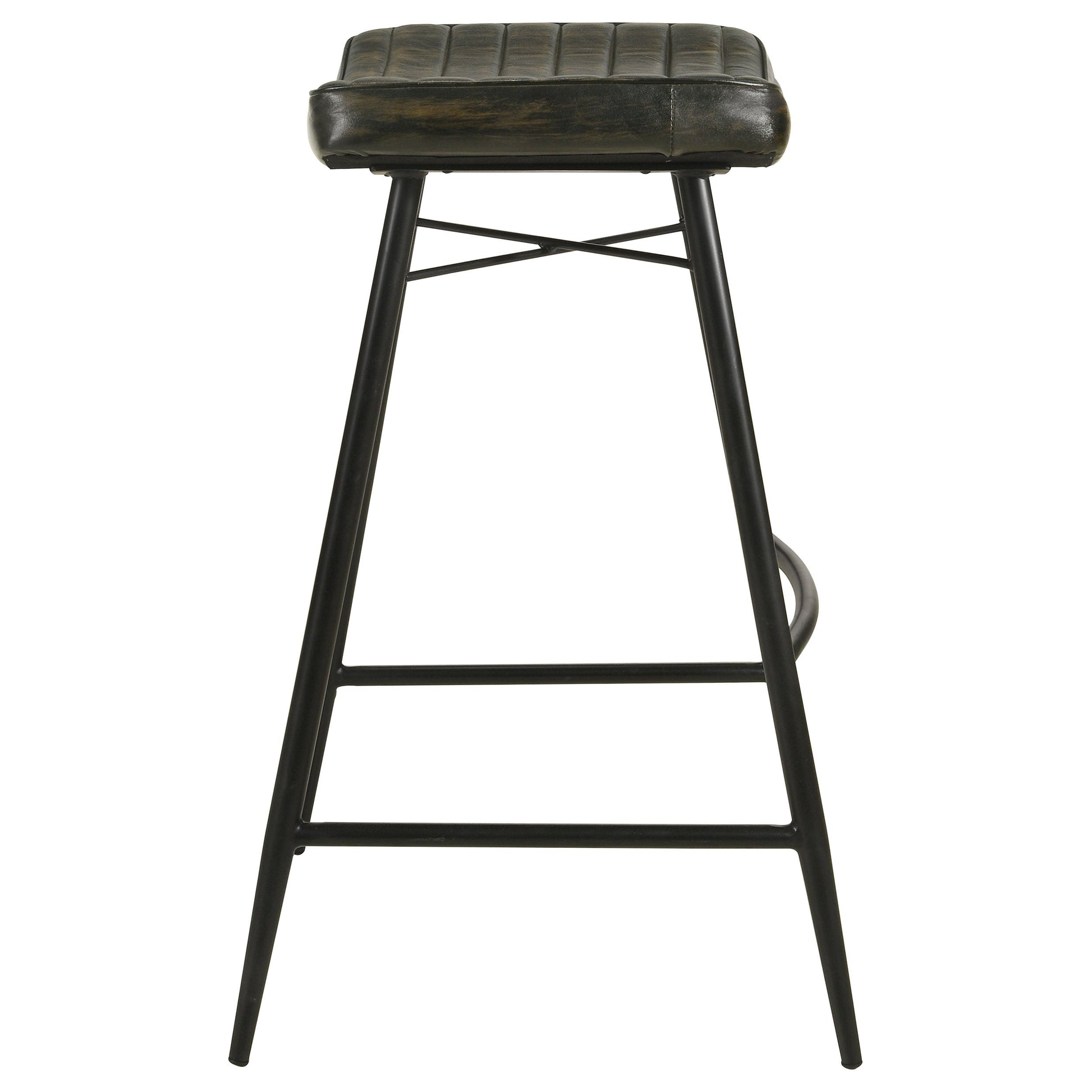 Dale un toque informal a tu cocina o bar con la exquisita tapicería de cuero antiguo de este clásico taburete sin respaldo. Su asiento de suave curvatura te ofrece comodidad, con capitoné acanalado que aporta textura y un estilo cautivador. Su resistente base de metal proporciona estabilidad para todas tus necesidades de asiento, desde un café rápido por la mañana hasta una cena relajada con tu pareja. Las patas acampanadas definen su silueta, con un refuerzo en forma de X justo debajo del asiento que añade interés visual y profundidad. Los reposapiés de suave curvatura integrados en la base ofrecen soporte y estilo para toda la familia.