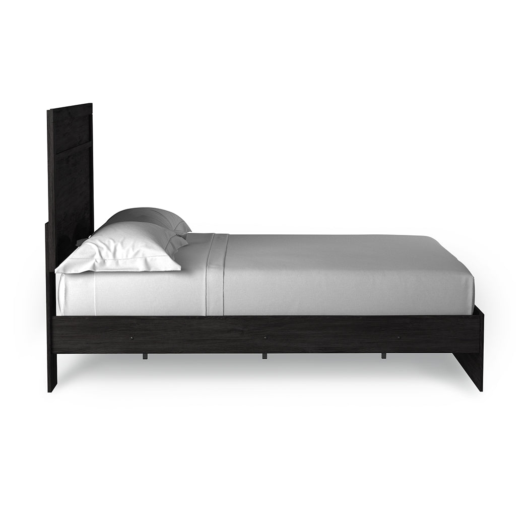 With its clean-lined look and modern attitude, this queen panel bed is a fresh style awakening. A warm charcoal hue over replicated oak grain easily complements other furniture finishes. The simple, unadorned profile is given depth and dimension with the addition of plank-style moulding on the headboardÑproof that beauty lies in the details.
