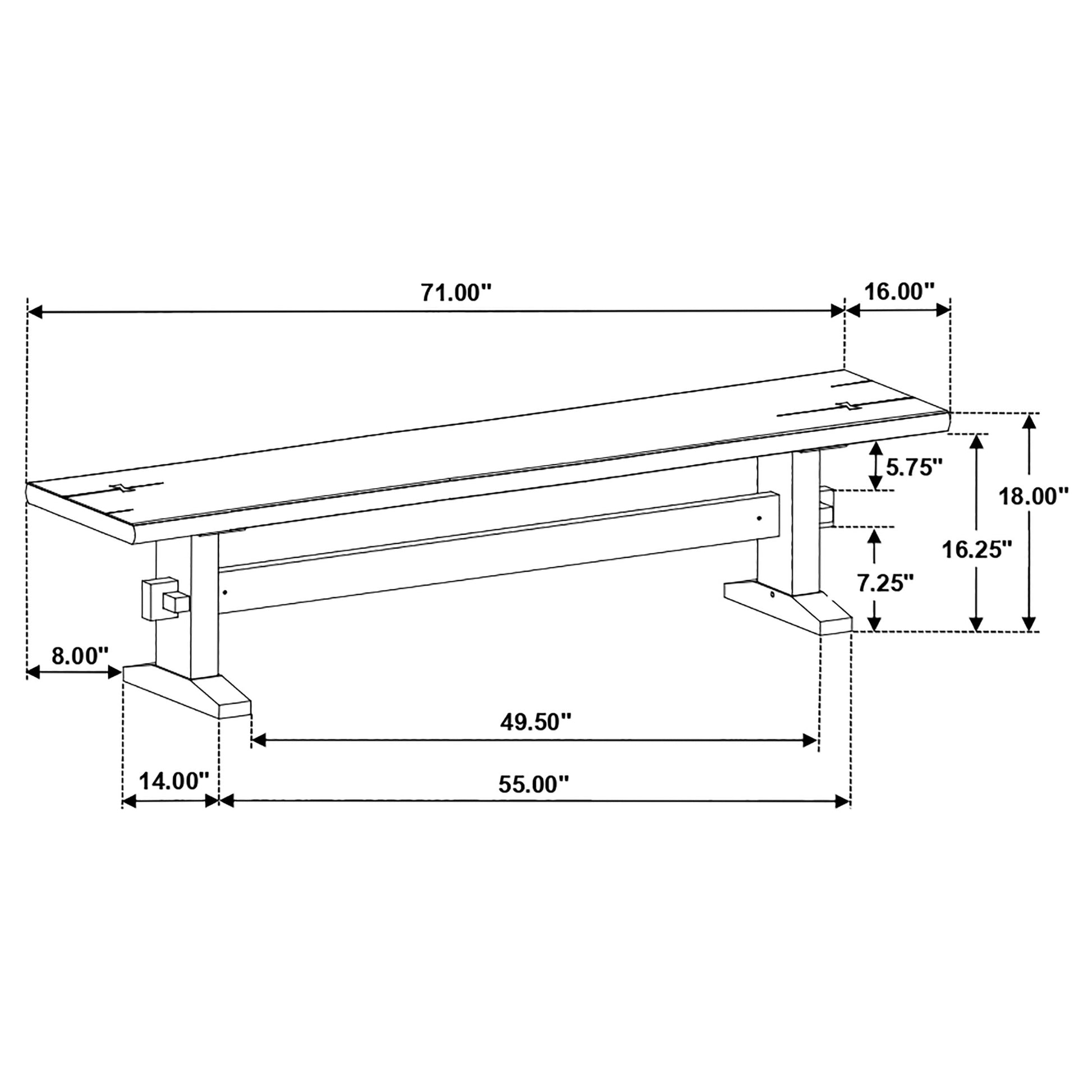 Ahorra espacio y añade estilo. Este banco de comedor es perfecto para una mesa rústica o informal. Con una silueta sin respaldo ni brazos, se esconde debajo de la mesa, ahorrando espacio cuando lo necesitas. Su asiento de madera luce un maravilloso acabado miel natural con una suave calidez que complementa cualquier espacio. Su base de estilo caballete le aporta carácter y su acabado negro ahumado aporta profundidad y contraste.