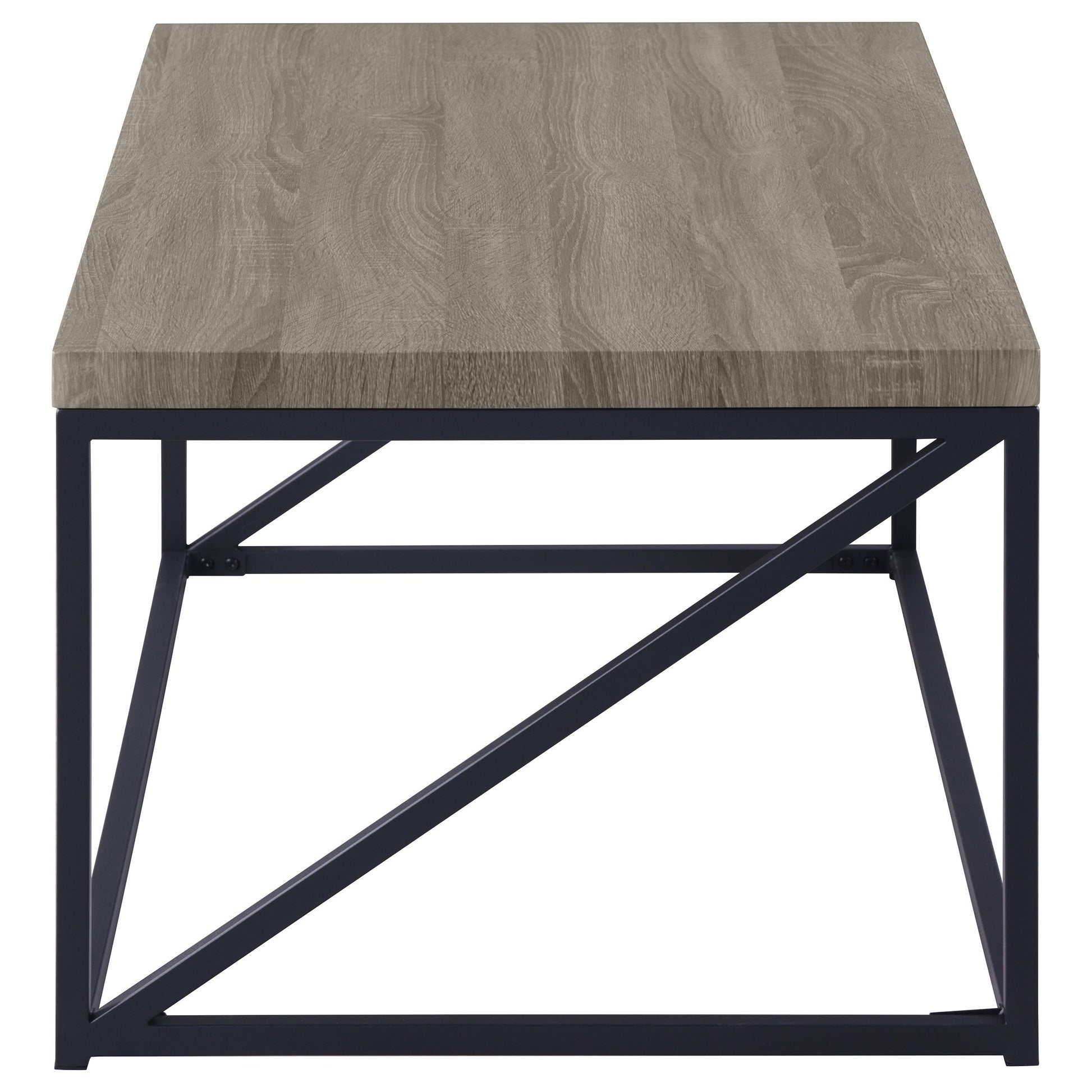 Mesa de centro con tapa de madera de ingeniería para mayor durabilidad y un diseño elegante y moderno.