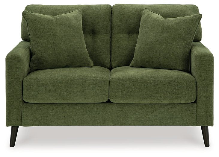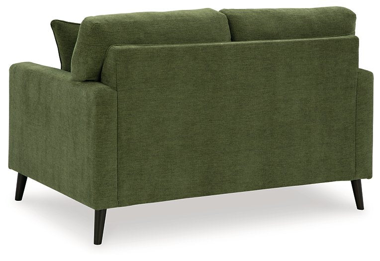 Alimenta tu nostalgia moderna de mediados de siglo con un toque contemporáneo. Su vibrante tono a la moda y su cómoda sensación hacen de este loveseat el sofá perfecto para relajarse solo o con amigos y familiares. Su perfil lineal aporta un estilo fresco y elegante, y las patas cónicas con detalles le dan un toque de distinción.