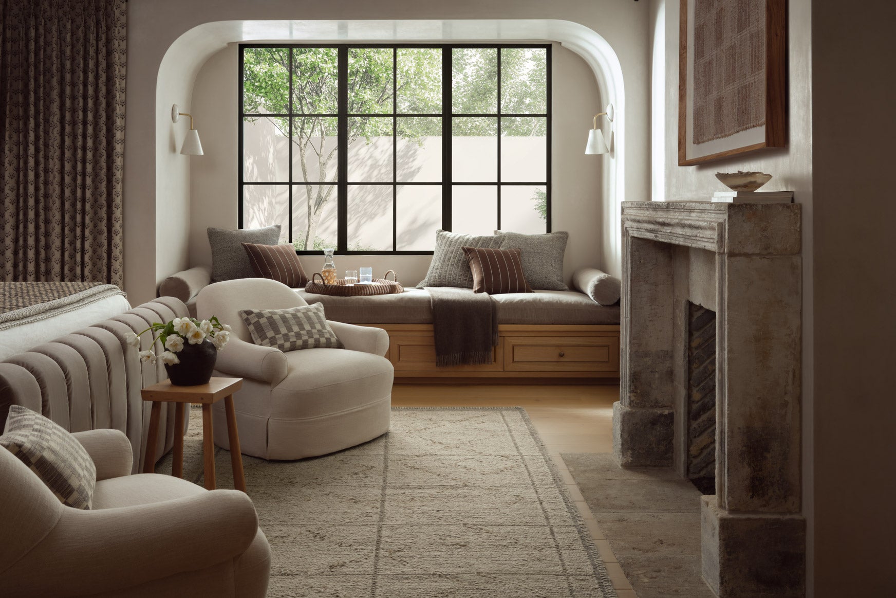 Beautifully crafted by hand, the Bowie Collection by Amber Lewis x Loloi is a textured area rug with an earthy, organic aesthetic. The pile has a flatweave base with chunkier, slightly raised geometric motifs and whipstitched edges. It is an elegant yet easy-to-work-with rug for living rooms, bedrooms, and other high-traffic areas of the home. This collection is made of wool, cotton, and other fibers in India and GoodWeave-certified, ensuring our commitment to ethical production and the support of weavers communities.