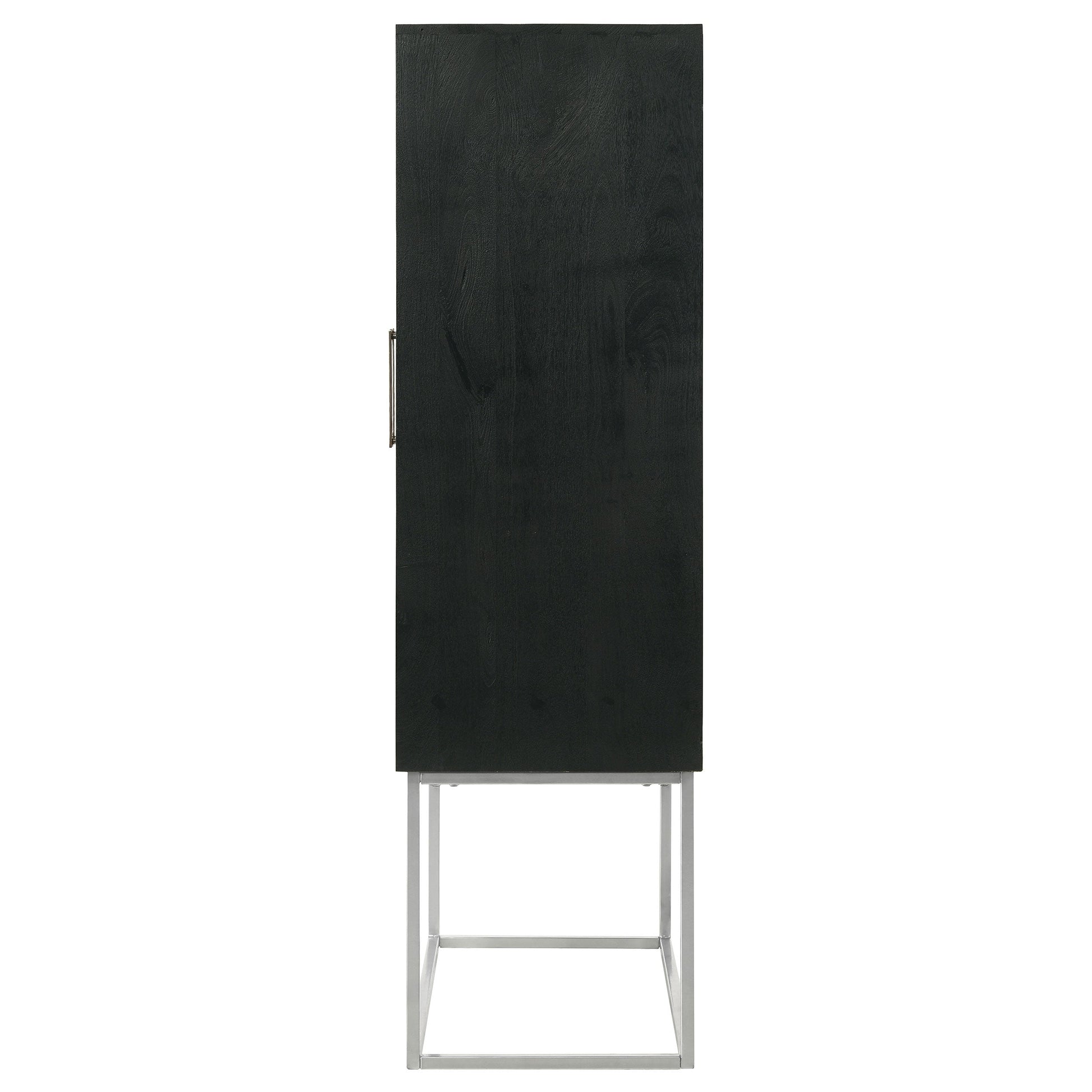 Fabricado en madera de mango, con un cálido acabado de nogal en sus puertas y un acabado de caja negro.