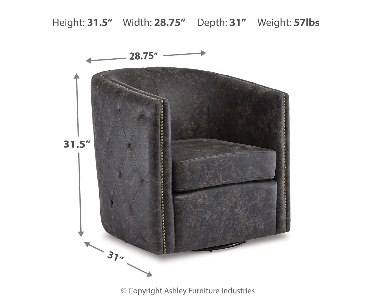 Classic style gets an urban upgrade in this cool accent chair. The barrel back and tufted sides evoke swanky private clubs while the distressed black faux leather keeps it current.