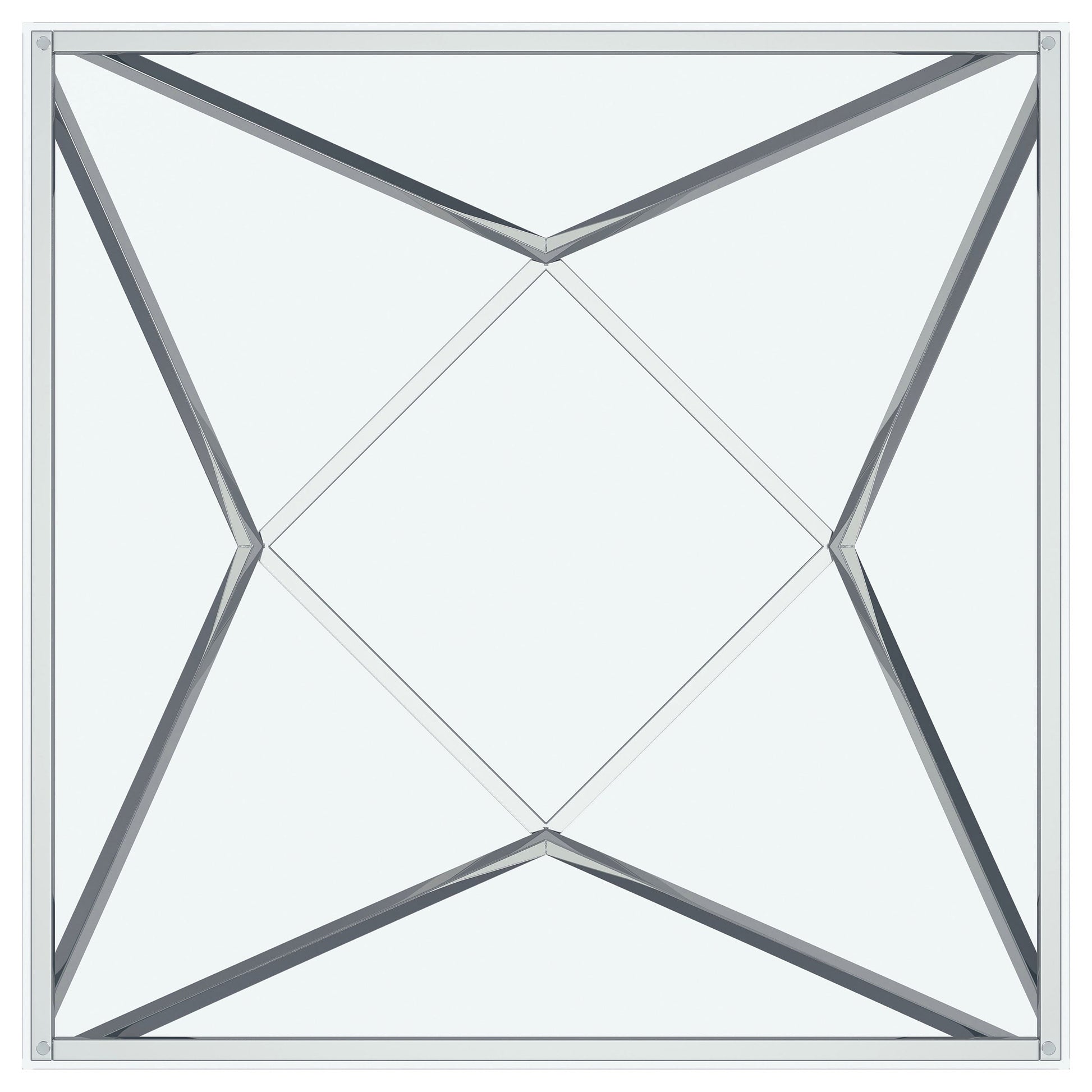 Esta moderna mesa auxiliar luce una base geométrica audaz con acabado en níquel pulido, combinada con un resistente tablero de vidrio templado transparente. La superficie de vidrio templado ofrece resistencia a los arañazos y un mantenimiento sencillo, mientras que la estructura de acero con acabado en níquel garantiza una estabilidad duradera. Su diseño de estructura abierta aporta una estética contemporánea y ligera, ideal para interiores minimalistas o de inspiración industrial. Esta versátil mesa auxiliar combina funcionalidad y estilo, lo que la convierte en la opción perfecta para espacios modernos.