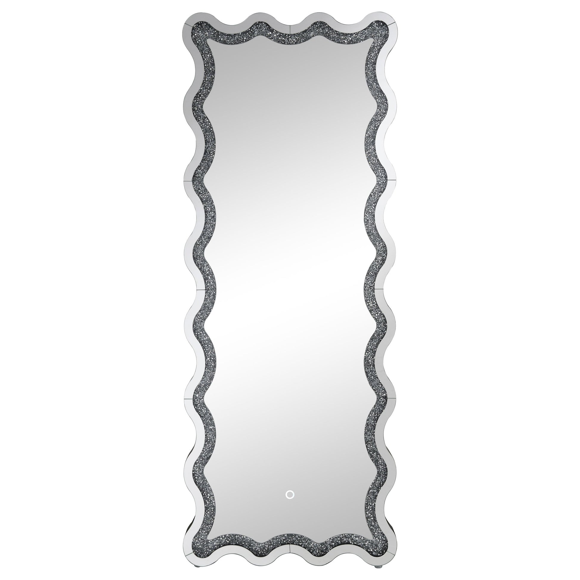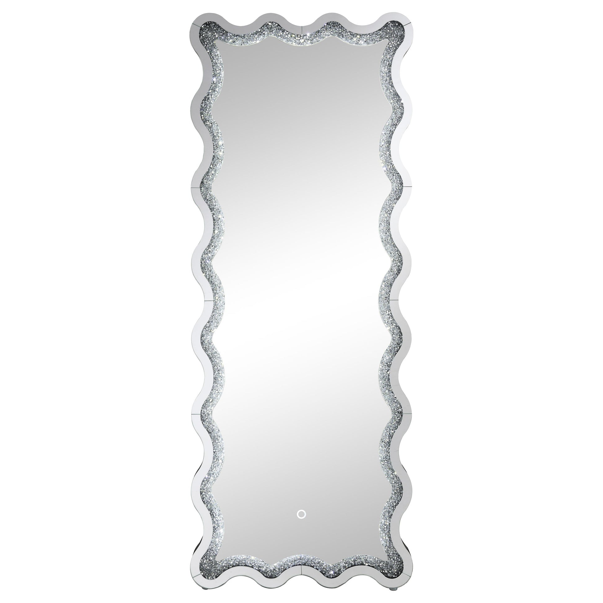 Dale un toque moderno y sofisticado a tu dormitorio o sala de estar con un espejo de pie LED contemporáneo. Incluye un marco que se sostiene por sí solo, lo que permite colocarlo en cualquier lugar. El espejo luce un diseño dinámico con una silueta ondulada creada con curvas convexas y cóncavas que crean un ambiente fluido y atractivo. El espejo y las capas de acabado en forma de diamante crean brillo y sofisticación, perfectos para un dormitorio moderno y glamuroso. El espejo incluye una luz LED, ideal para iluminar tus looks diarios en una suite principal.