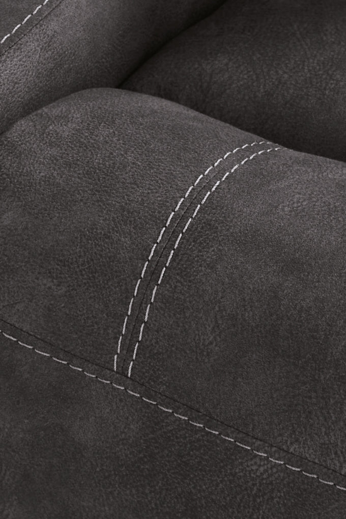 Seamlessly blend contemporary aesthetics and uncompromising comfort with this reclining loveseat. Its handsome charcoal-hued faux leather has a tailored appeal thanks to sizable stitching details. As for modern convenience? The simple one-pull reclining and ambient LED lighting encourage you to relax in style.