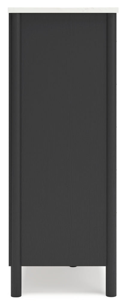 This chest of drawers reflects your sophisticated approach to boho style. Crafted with both form and function in mind, its replicated marble top beautifully contrasts a matte black finish. The versatile design suits all-neutral spaces or blends with your favorite pops of color. ItÕs inviting, yet posh. Luxe, yet laid-back. With this chest, your free-spirited vibe meets modern design.