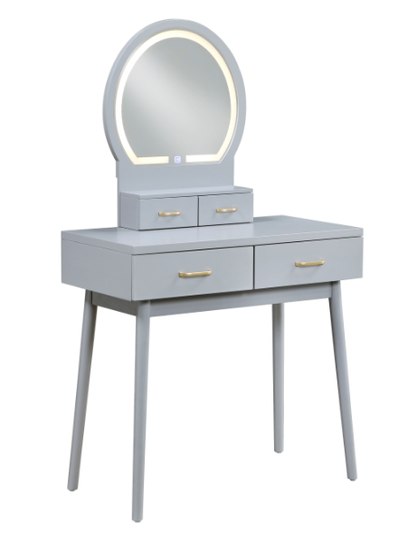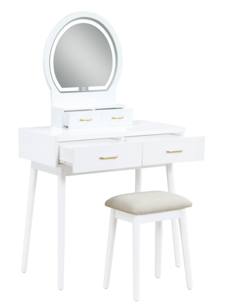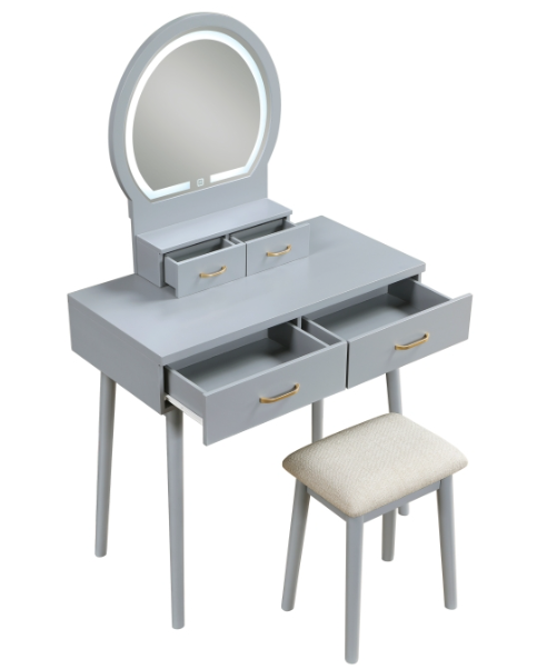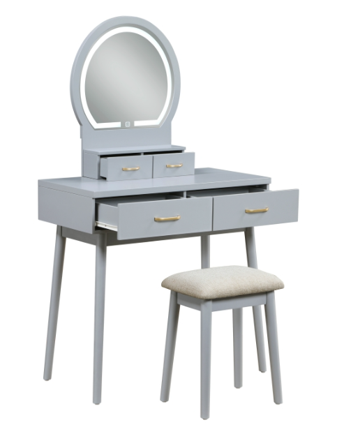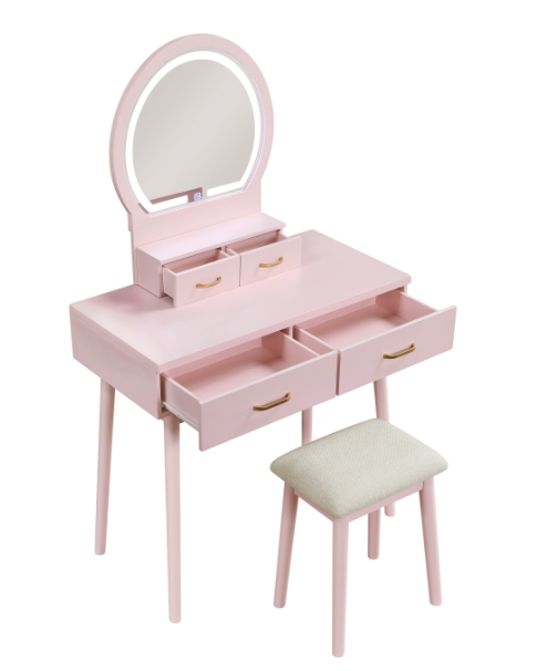 Transforma tu espacio con el elegante y moderno tocador Camila , diseñado para brindar elegancia, organización y un estilo natural. ¡Disponible en negro, gris, rosa o blanco! El espejo LED integrado garantiza una iluminación perfecta para maquillarte, mientras que los amplios cajones mantienen tus artículos esenciales bien guardados. Combinado con un taburete acolchado para máxima comodidad, este tocador es la combinación perfecta de estilo y funcionalidad. Mejora tu rutina diaria y dale un toque de lujo a tu dormitorio. ¡Pide el tuyo hoy mismo y crea el espacio glamuroso que te mereces!