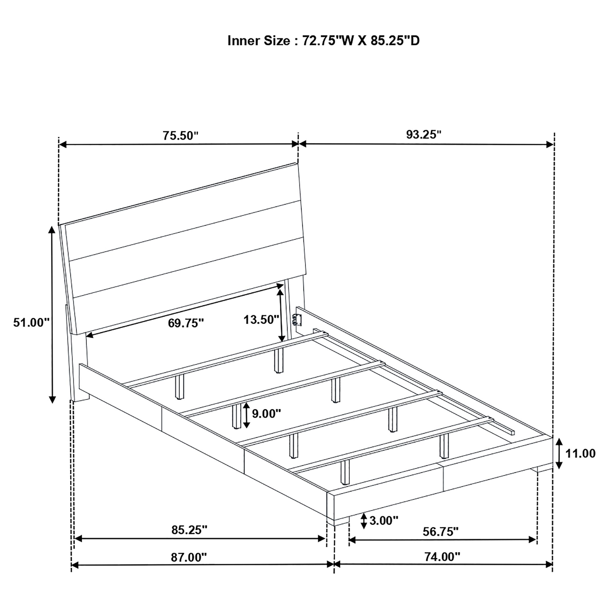 California King Bed :75.50"w x 92.25"d x 51.25"h