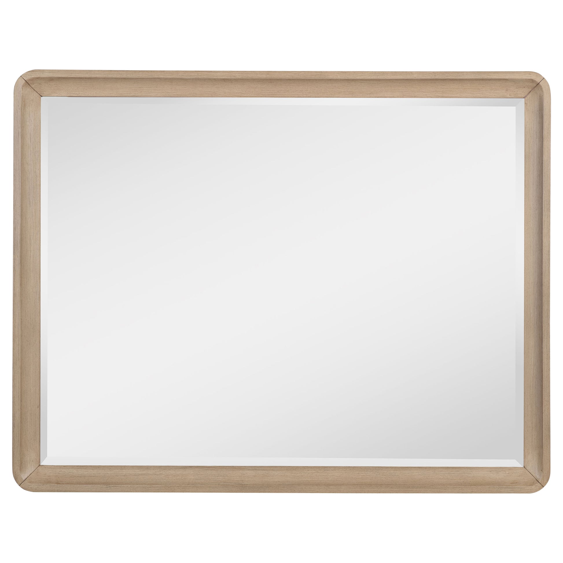 Rectangular mirror with a light elm finish for a sleek, modern aesthetic
