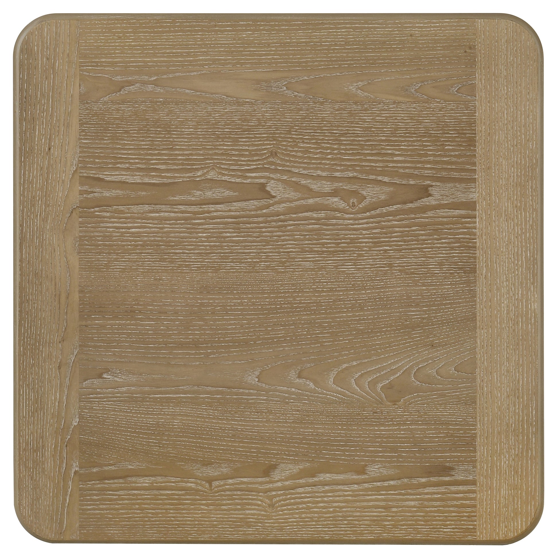 Grounded in architectural simplicity, this square end table showcases sculptural reeding and smooth curvature in a compact, functional form. The softly rounded square top rests over a dual curved pedestal base adorned with vertical reeded detailing, all finished in a warm distressed light brown. Crafted from engineered wood and oak veneer, this side table merges texture, rhythm, and utility as a refined accent for living rooms or bedrooms.