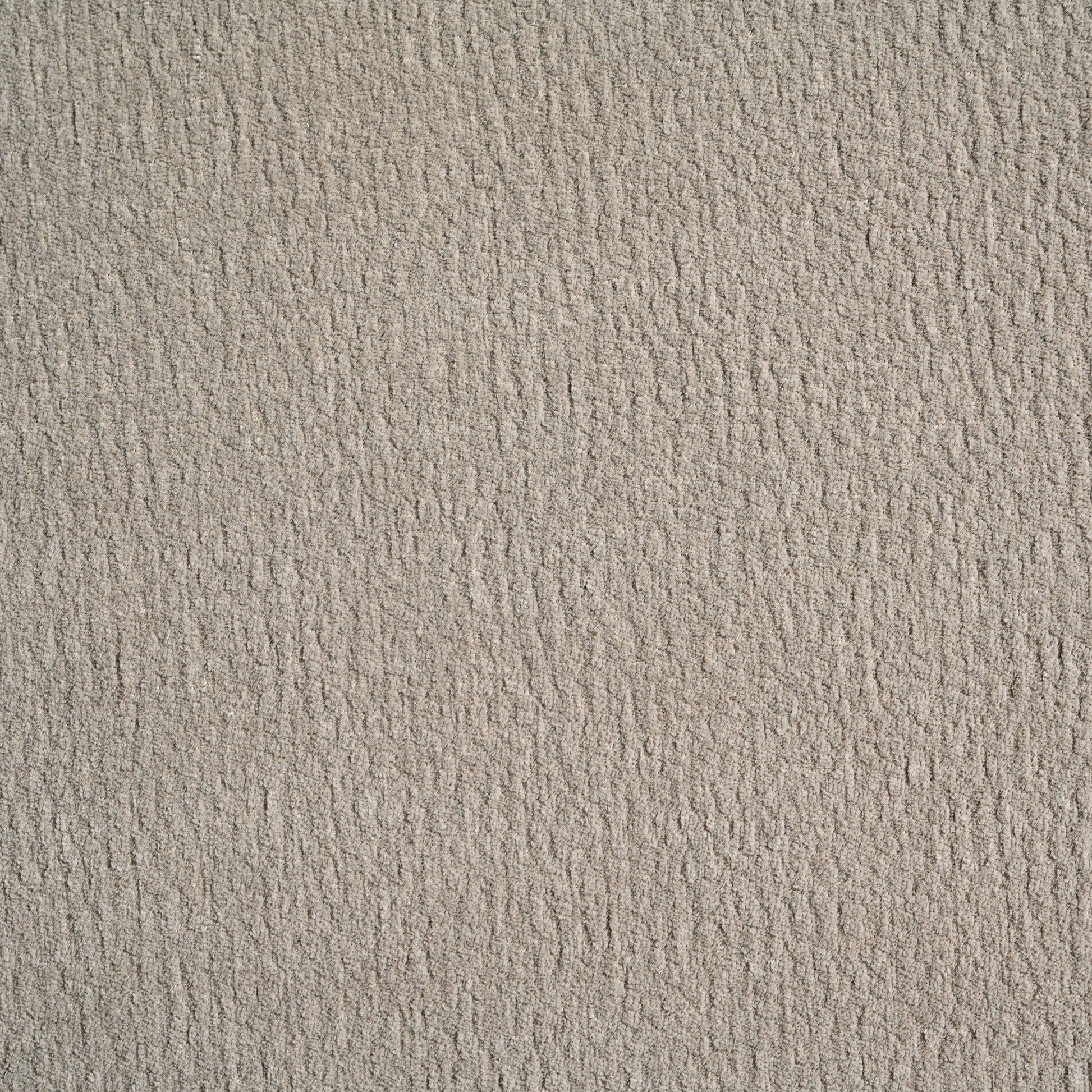 Taupe polyester upholstery delivers a soft hand with everyday durability