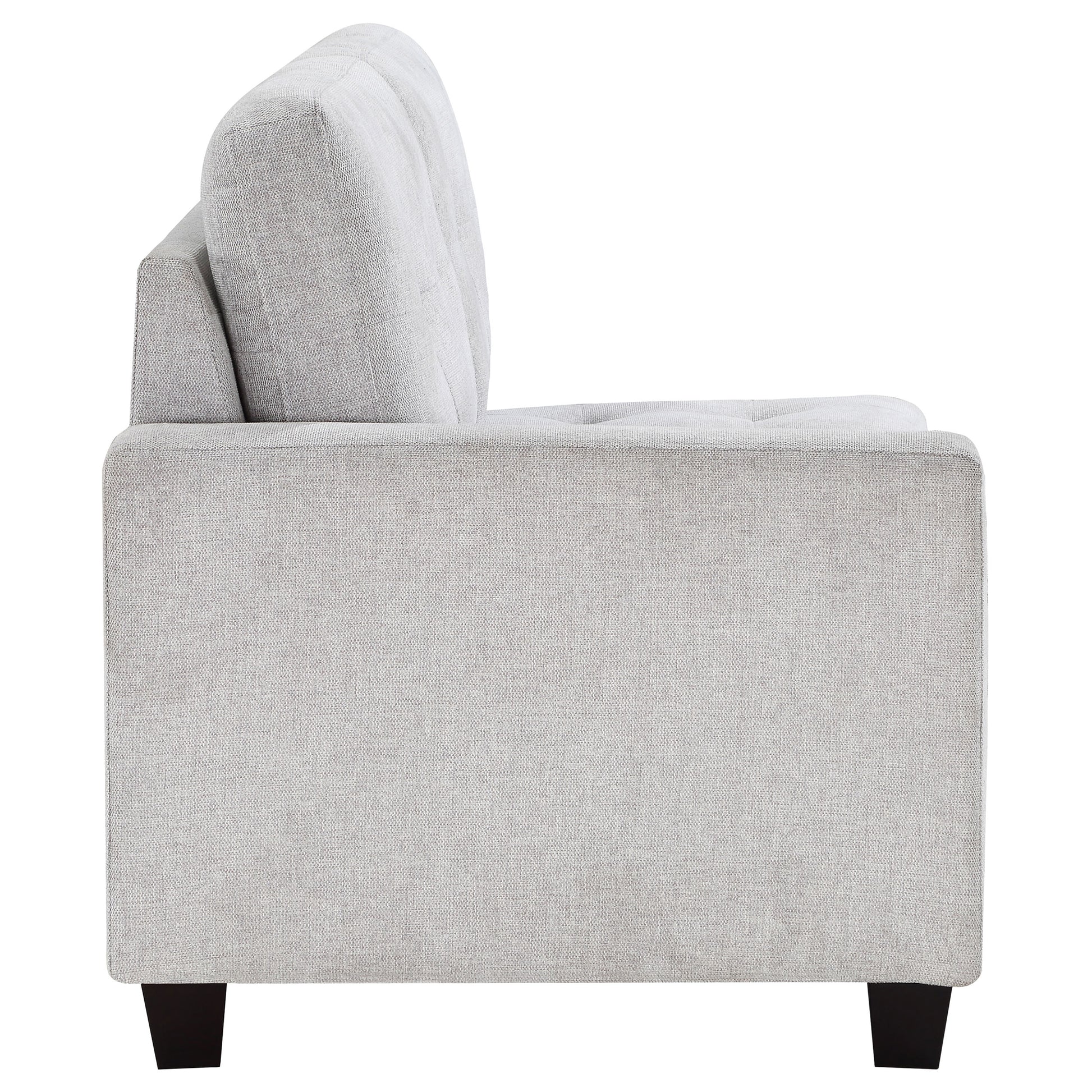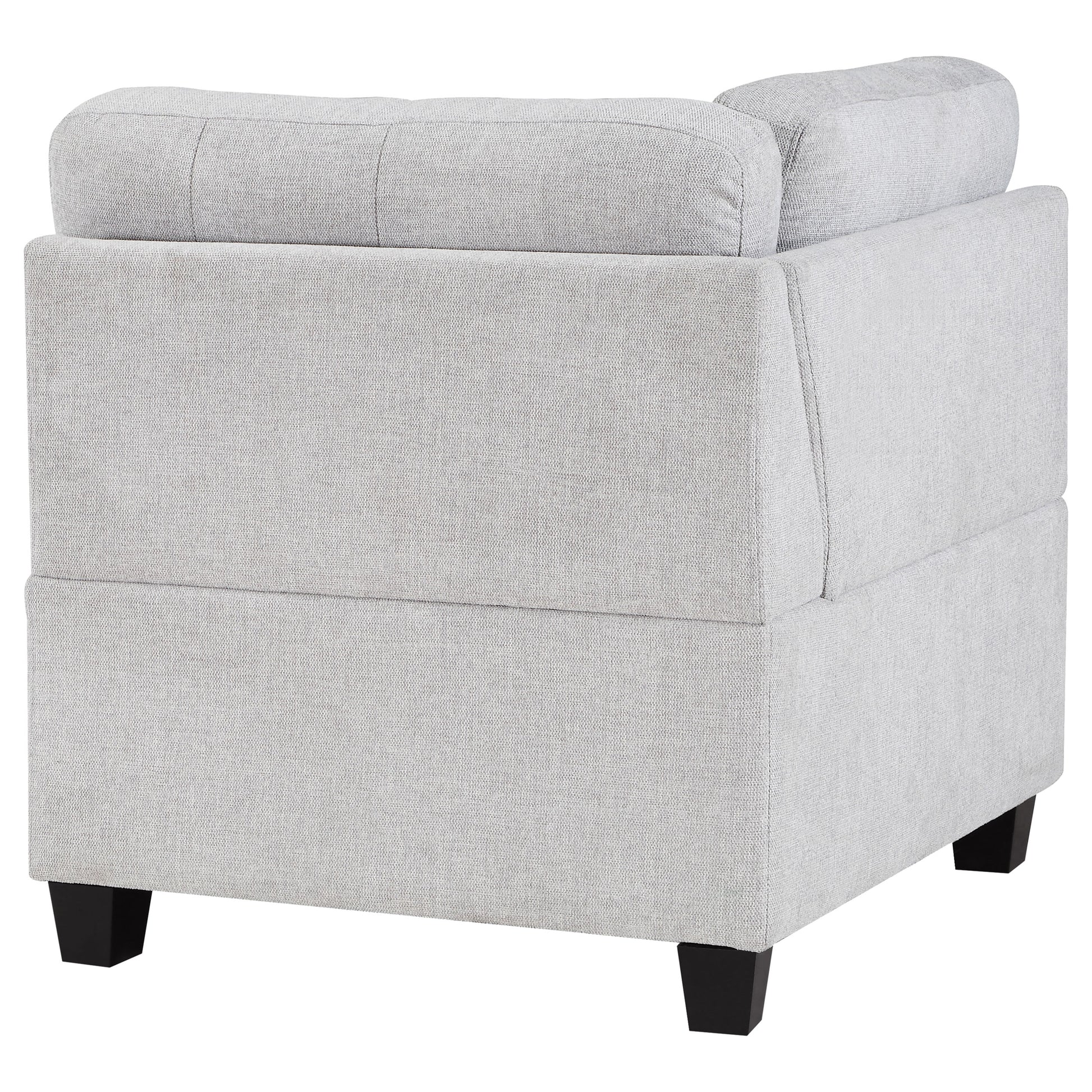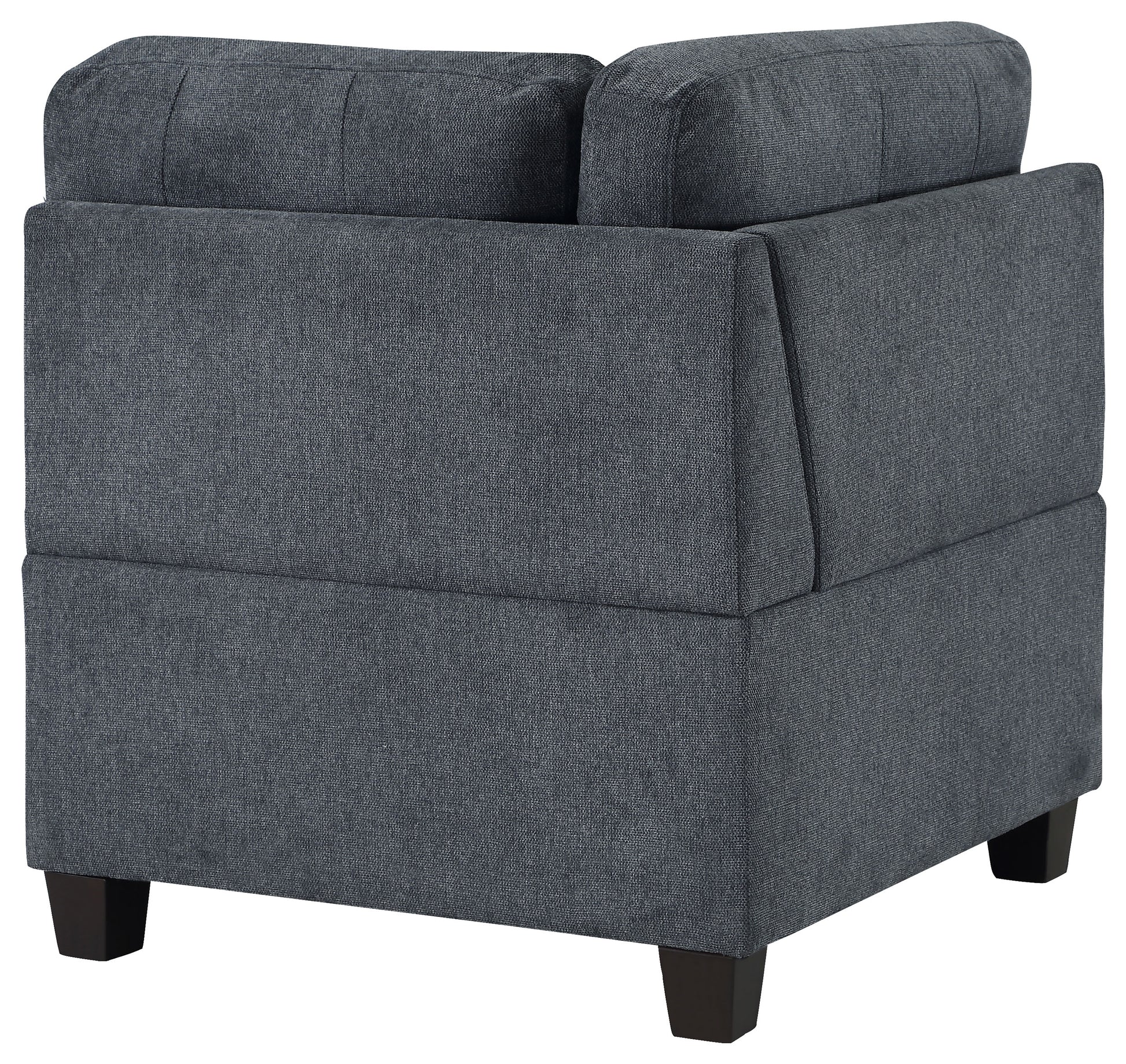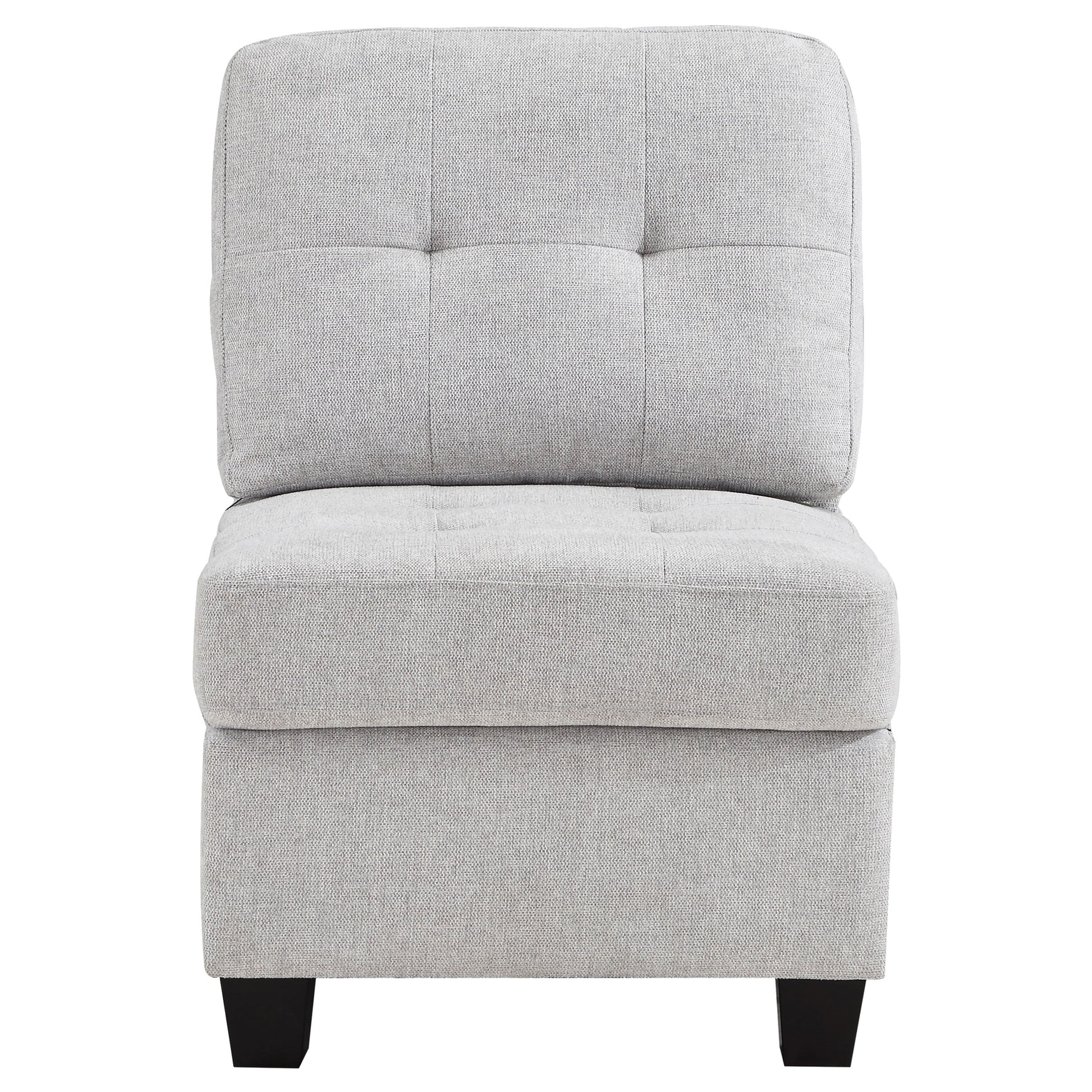 Elevate your living space with this versatile armless chair, perfect as a standalone piece or as an additional seating option in any room. Upholstered in a sophisticated fabric, this chair offers a timeless design that blends seamlessly with various decor styles. The chair features foam-padded seat cushions for superior comfort, supported by a sturdy wood frame that ensures long-lasting durability. Its sleek, armless design allows for flexible placement, making it ideal for smaller spaces or as an accent piece. The subtle tufting on the back cushion adds a touch of elegance, while chunky wood feet complete the classic look.