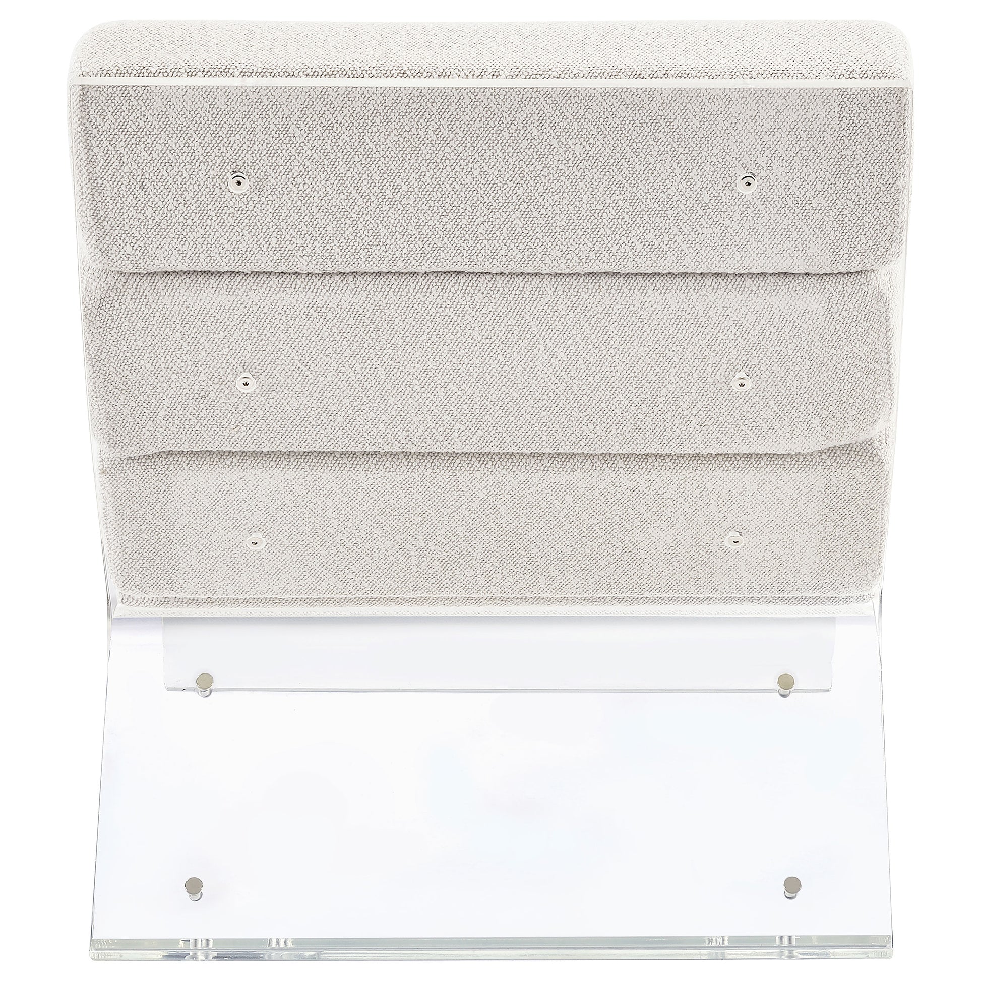 Discover a fusion of contemporary design and luxurious comfort in this accent lounge chair, where horizontal channeling meets the rich texture of boucl fabric. The thick, clear acrylic frame, crafted with the highest quality, surrounds the upholstered elegance, creating a sophisticated floating effect. Each line of channeling invites you to experience comfort tailored for relaxation, while the chair's transparency blends with its environment, offering a seamless flow of style. This isnÕt merely furniture; itÕs a centerpiece that commands attention without overshadowing the room. Revel in the blend of plush comfort and flawless clarity that this chair brings to your cherished living space.