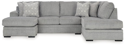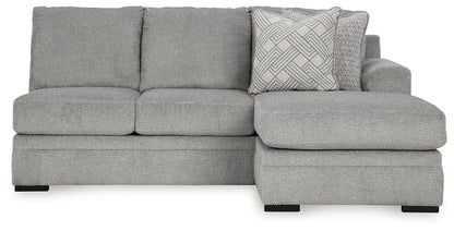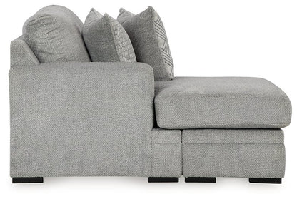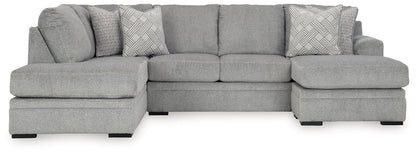 No te limites por la falta de espacio. Este sofá modular hace que las noches de cine en familia y las reuniones con amigos sean aún más acogedoras. Con su configuración de doble chaise longue, todos tienen un rincón para relajarse. Su moderno tono gris ofrece el estilo contemporáneo que buscas. Así que ponte cómodo y relájate: esta pieza funcional está lista para consentirte con comodidad diaria.