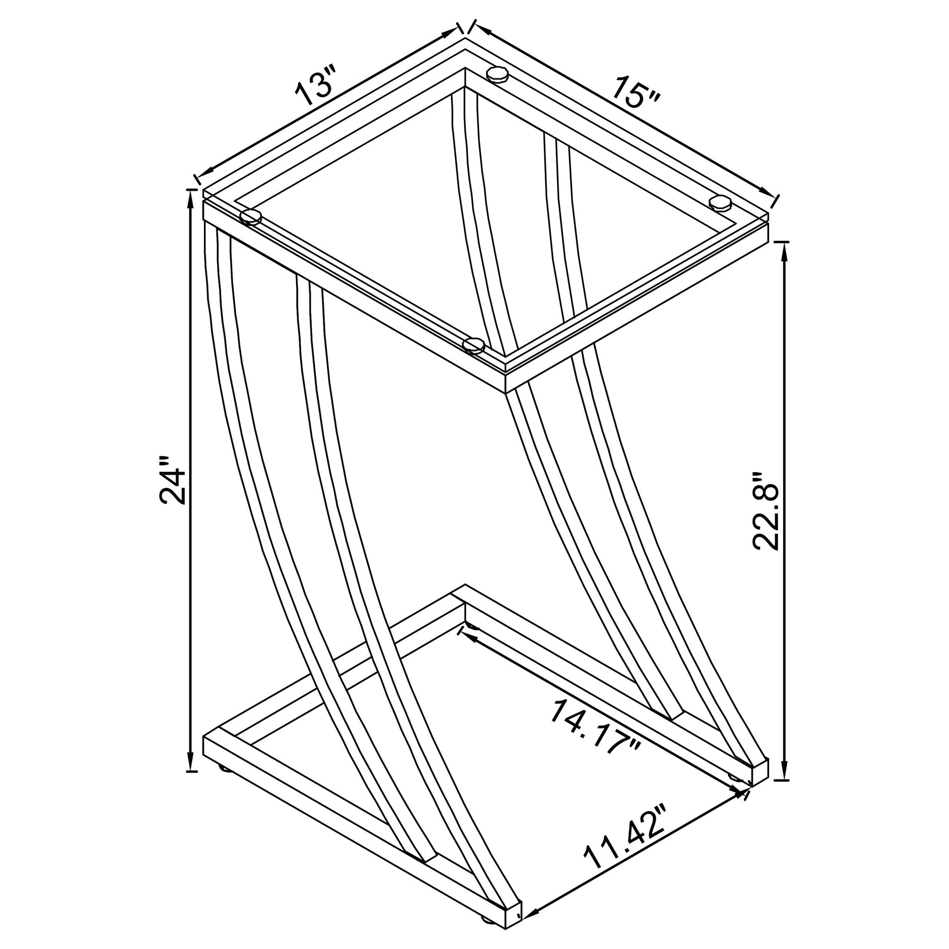 Mesa auxiliar: Ancho: 13,00, Fondo: 15,00, Alto: 24,00, Peso: 12,28