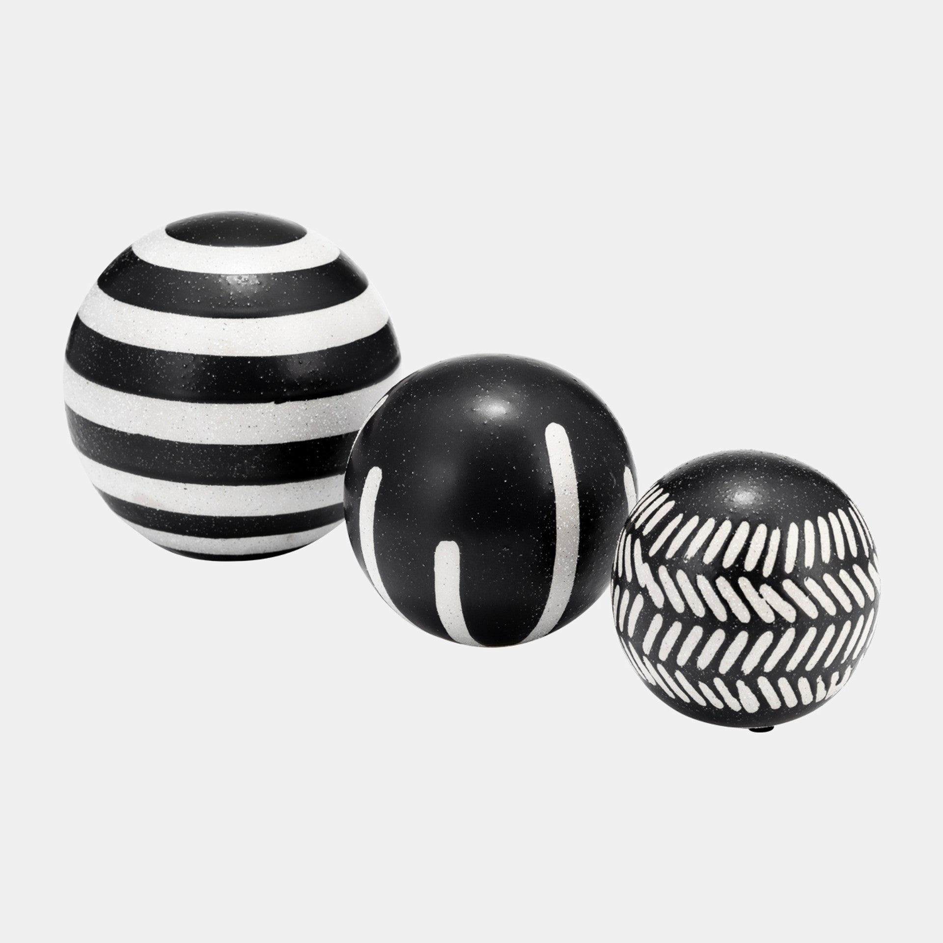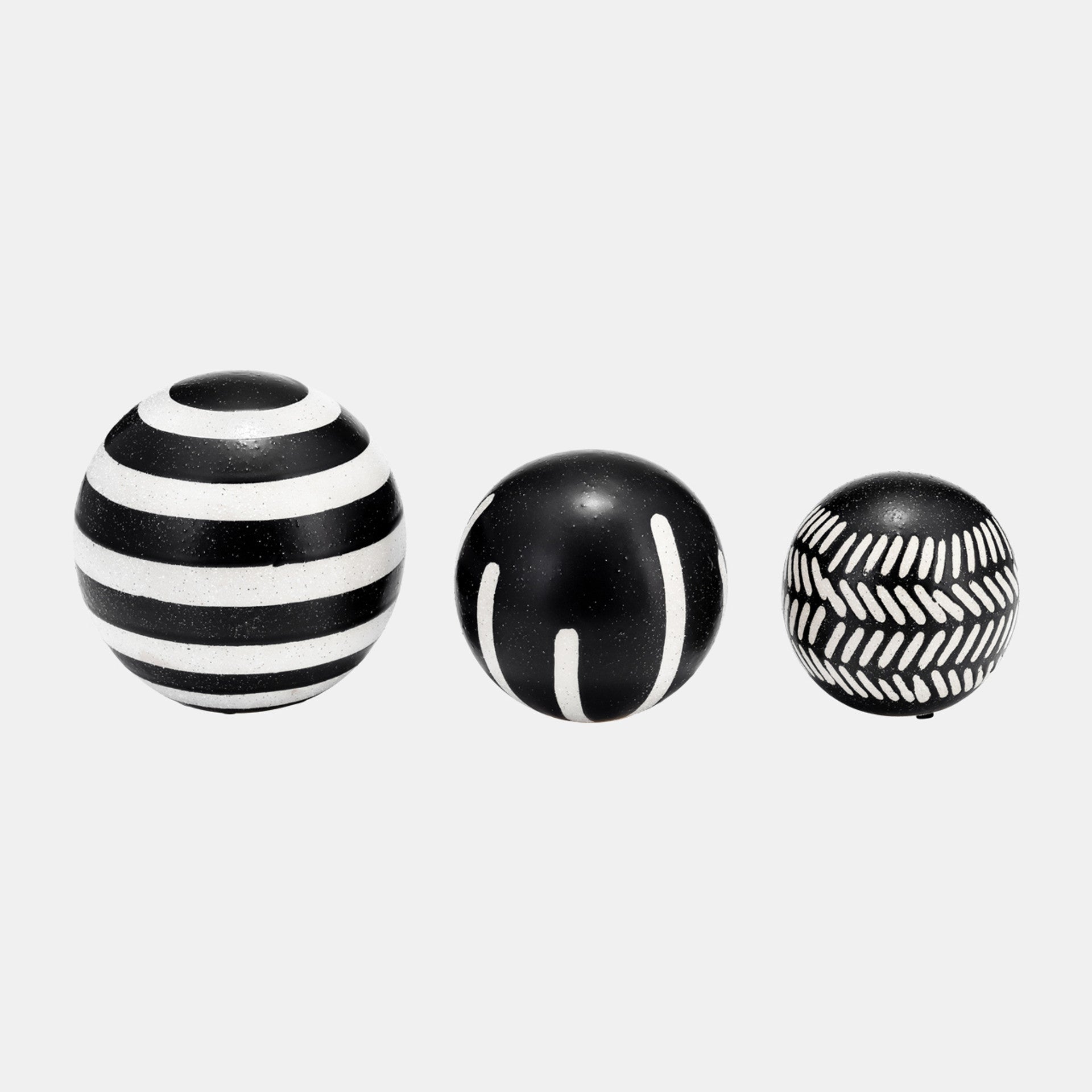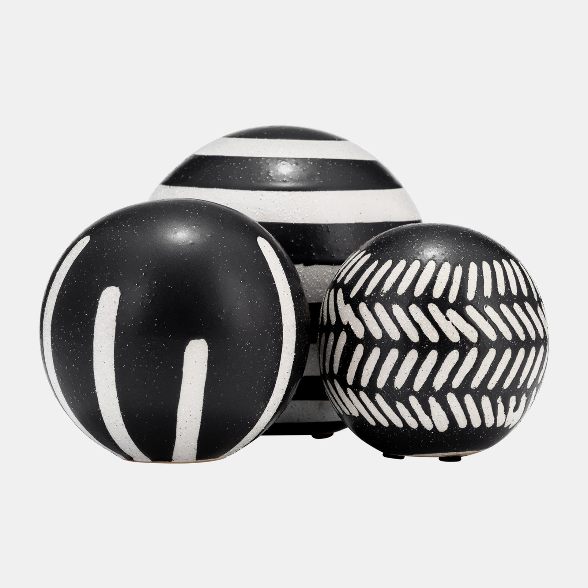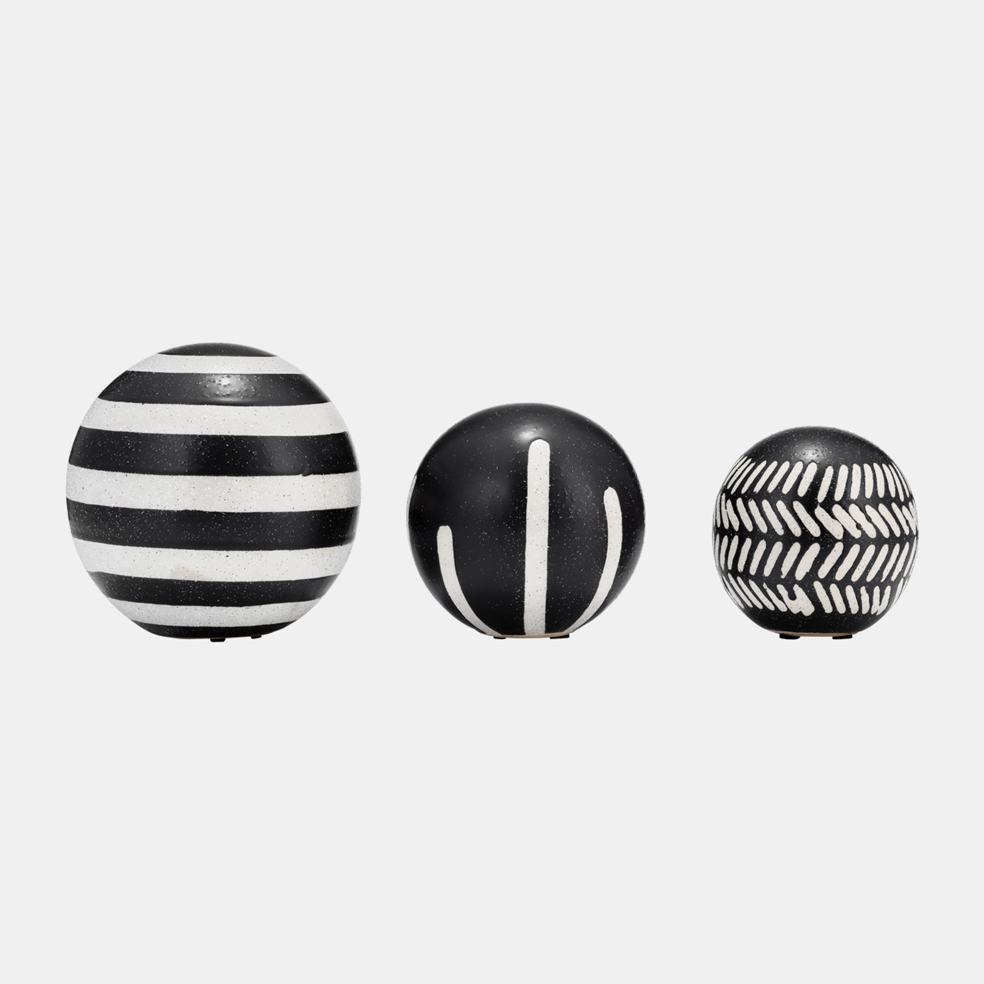 La magia está en los detalles, y este juego de orbes decorativos es el detalle perfecto para añadir a tu hogar u oficina y realzar la decoración actual. Este sencillo pero elegante juego de tres orbes puede ser un detalle decorativo independiente o combinarse fácilmente con otras piezas para crear un estilo personalizado. Colócalos en tu repisa, mesa de centro, escritorio, estantería y más. Este conjunto de orbes de cerámica viene en forma redonda y diferentes tamaños. Son en blanco y negro, cada uno con su propio diseño tribal único. Añádelos a tu hogar u oficina para un toque sofisticado y moderno.