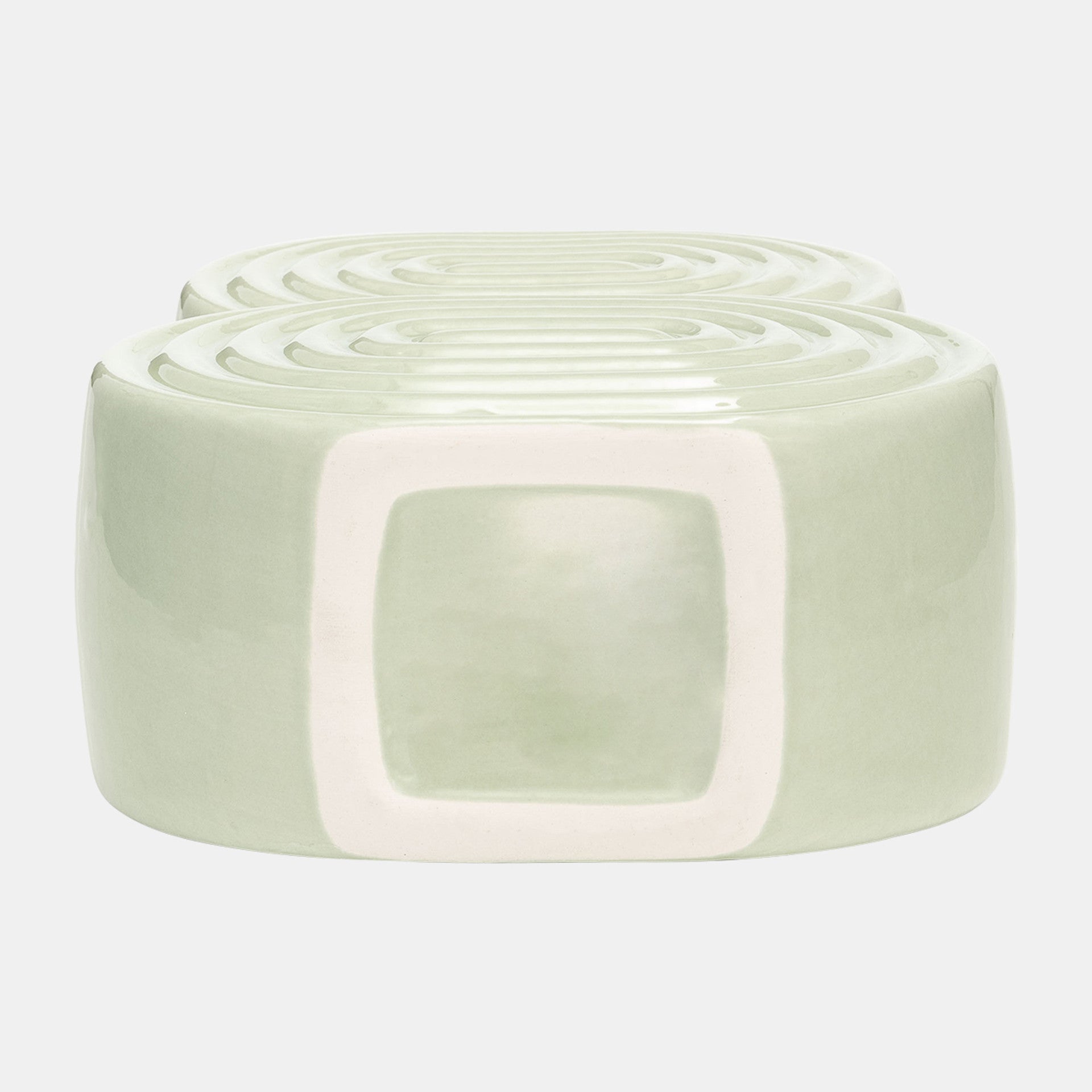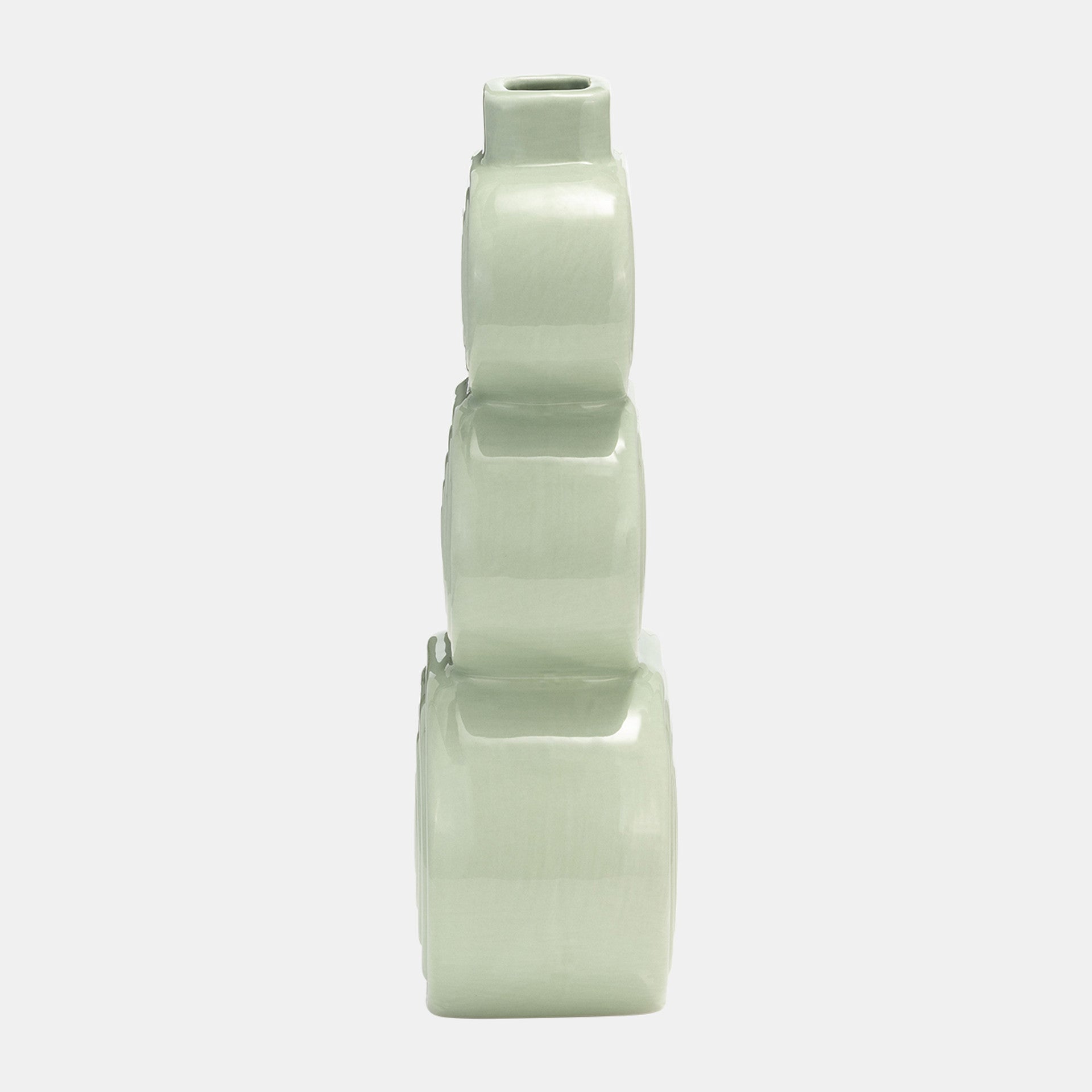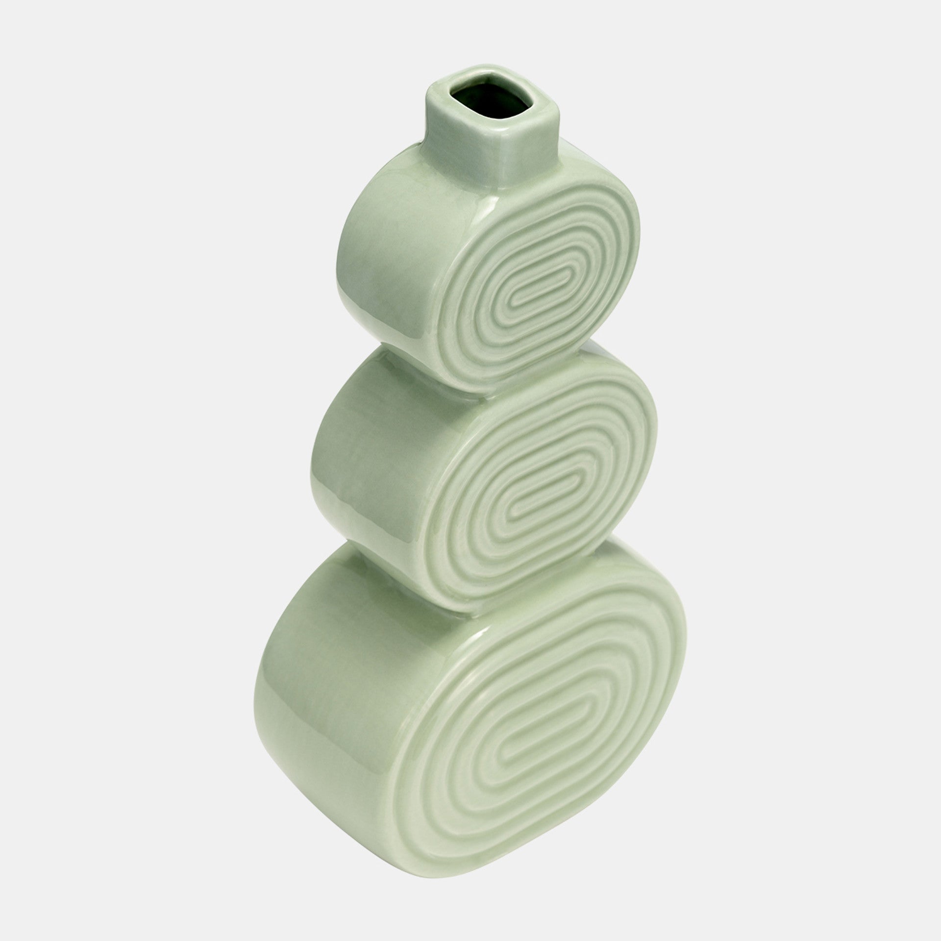 - Este hermoso jarrón de cerámica viene en un hermoso color verde pepino y está diseñado en una forma creativa que consta de dos círculos apilados con una abertura en la parte superior para su exhibición floral.