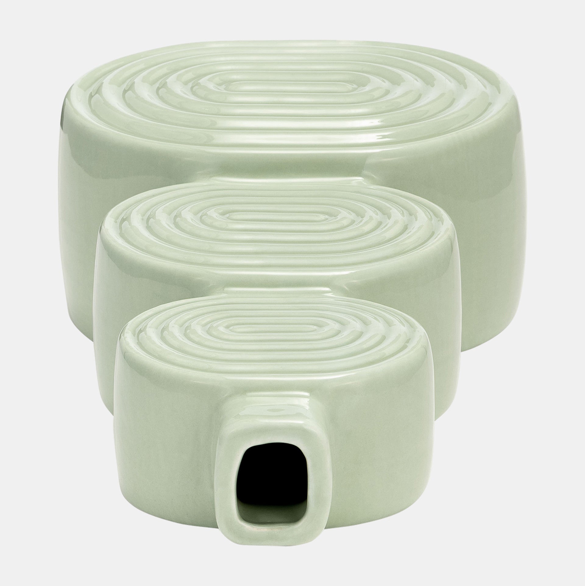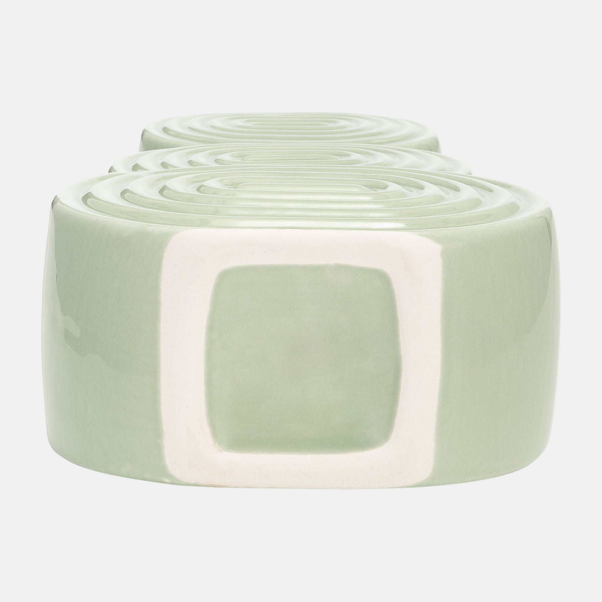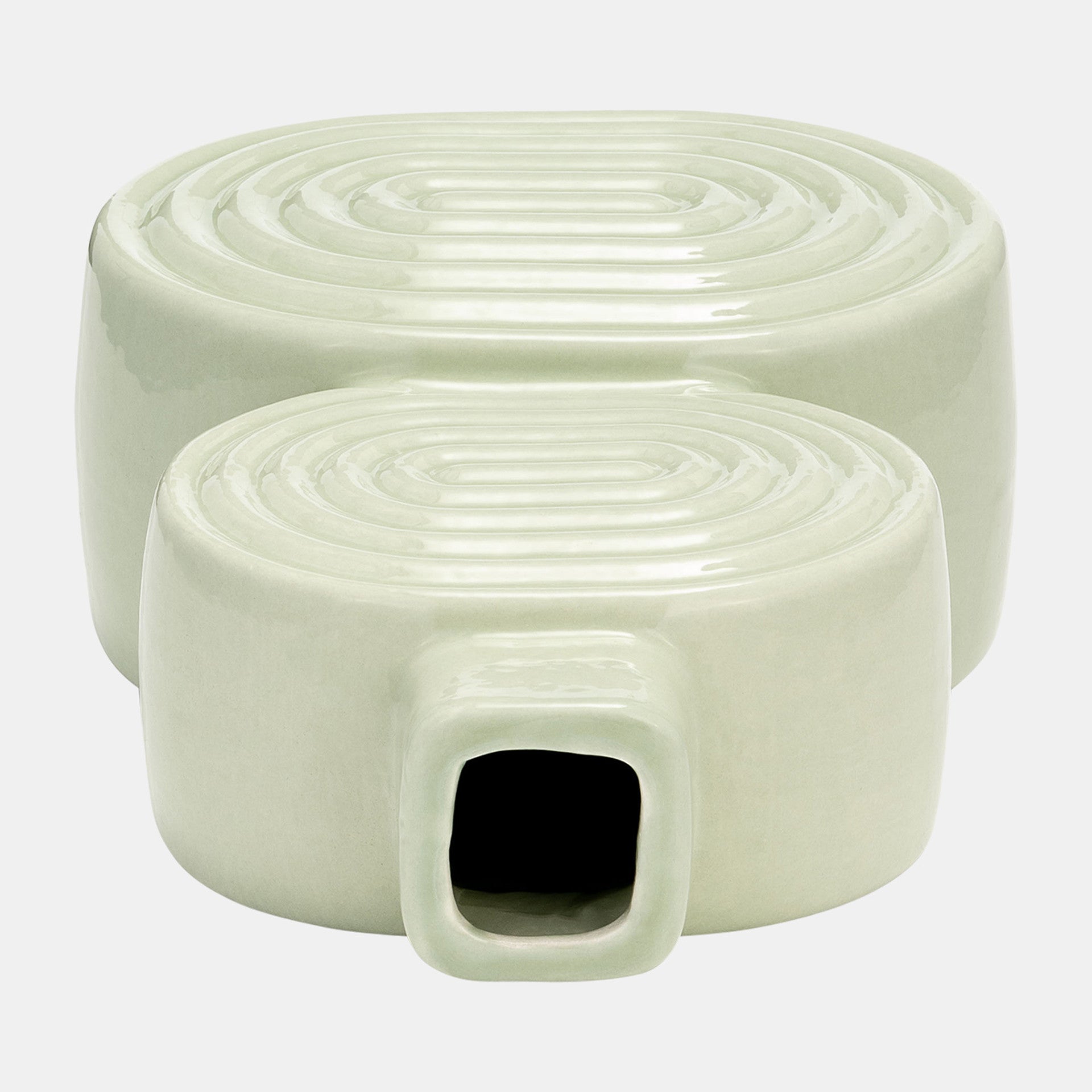 - Este hermoso jarrón de cerámica viene en un hermoso color verde pepino y está diseñado en una forma creativa que consta de dos círculos apilados con una abertura en la parte superior para su exhibición floral.