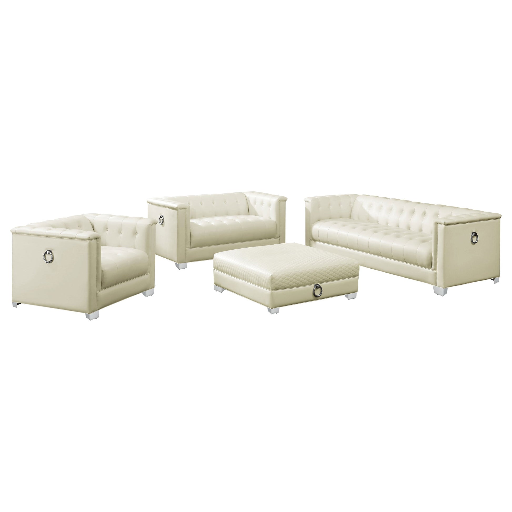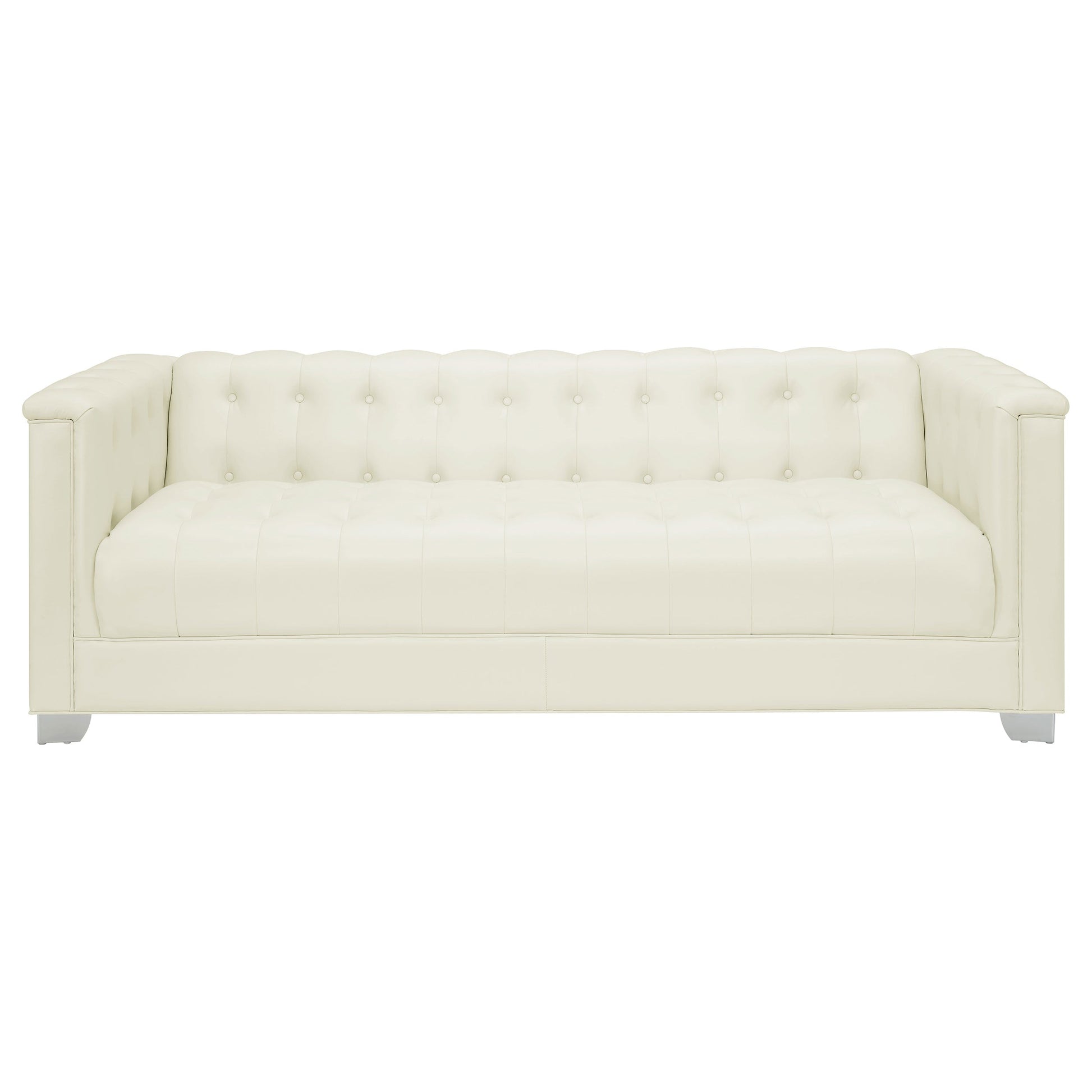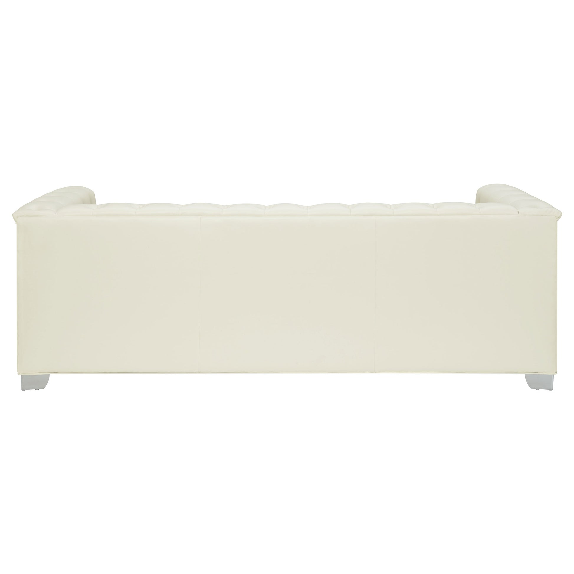 Icónico y elegante, este juego de sala de dos piezas de líneas elegantes rebosa glamour. La silueta del sofá y el loveseat presenta un estilo contemporáneo y discreto. Decorado con un capitoné con botones profundos y detalles acolchados, la tapicería de polipiel transpirable y acolchada luce impecable con su acabado blanco. Los brillantes detalles metálicos, como las resistentes manijas tipo aldaba cromadas y las patas cromadas, son modernos y elegantes. Sus colores y formas sobrios distinguen a este juego de sala de estar del resto.