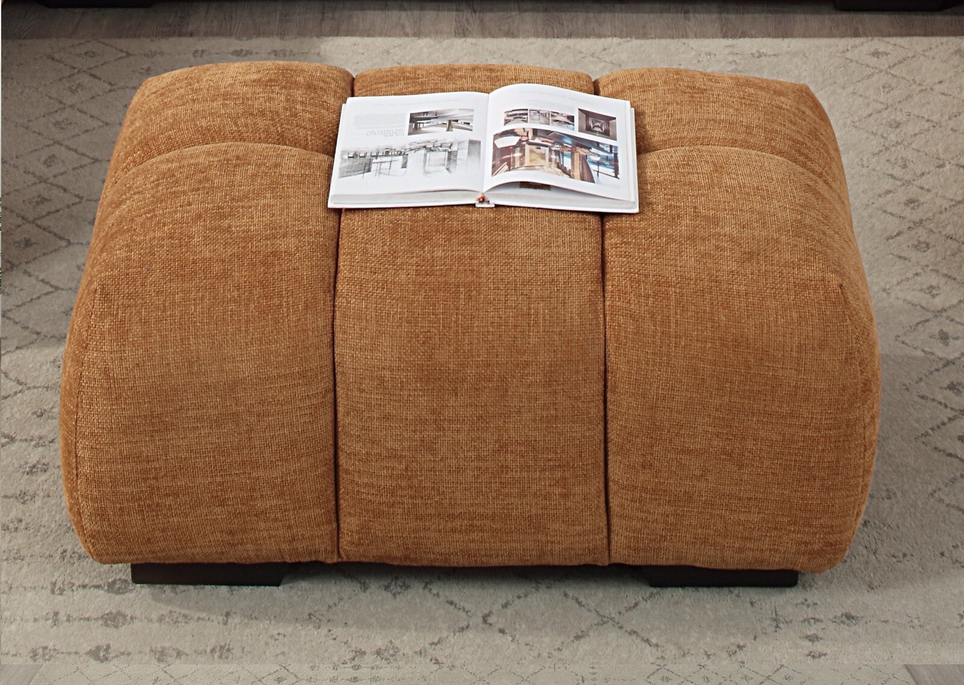 Ilumine cualquier espacio con la otomana Chosen, tapizada en chenilla naranja vibrante que le aporta un toque de color acogedor y una textura suave. Construida sobre una robusta estructura interior de madera con asiento de muelles embolsados, esta pieza ofrece durabilidad y una gran comodidad. Las patas cónicas KD completan el diseño con un toque limpio y moderno.