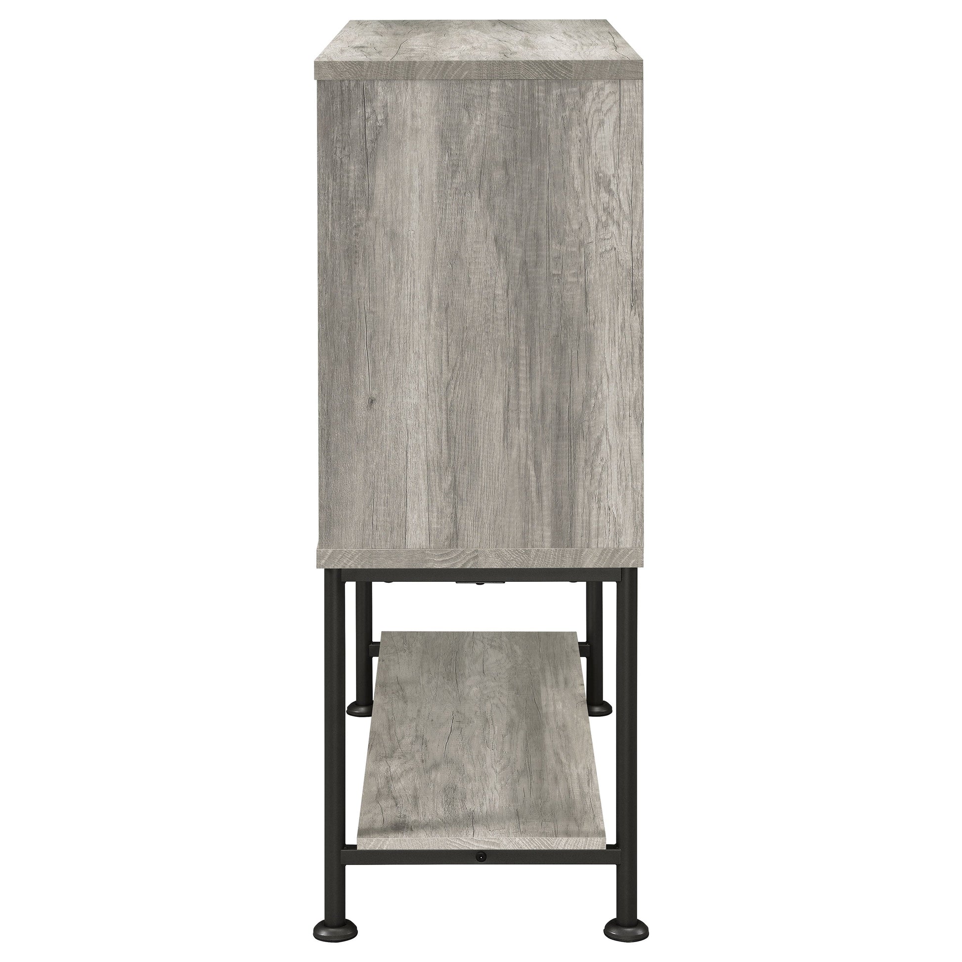 Perfecto para una escapada a la cabaña o al lago, este mueble bar presenta un acabado de madera flotante en gris claro, encantador y alegre. Colóquelo en una casa de campo rústica, ya que ofrece un encanto campestre con dos puertas corredizas de granero que ofrecen amplio espacio de almacenamiento. Fabricado con laminado de chapa de alta presión, este mueble bar está diseñado para durar muchos años. Además, cuenta con un estante ajustable detrás de cada puerta. Además, cuenta con un espacio abierto para exhibir sus decantadores y artículos de bar favoritos, junto con un estante para copas montado en la parte superior y un espacio para almacenar seis botellas de vino.