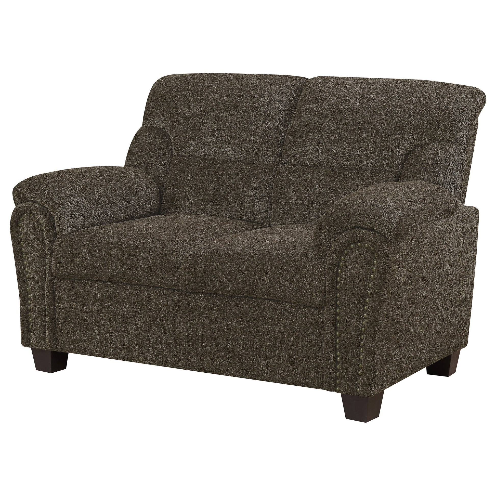 Este elegante y chic sofá de dos plazas aporta un toque de estilo a cualquier estancia. Sus brazos presentan una elegante silueta curva, adornada con un moderno ribete de tachuelas en la parte delantera. Su firme respaldo se ve acentuado por unas elegantes costuras capitoné. Sus patas de madera ligeramente cónicas completan su diseño clásico. Combinado con un sofá a juego o colocado solo, este sofá de dos plazas es ideal para cualquier espacio.