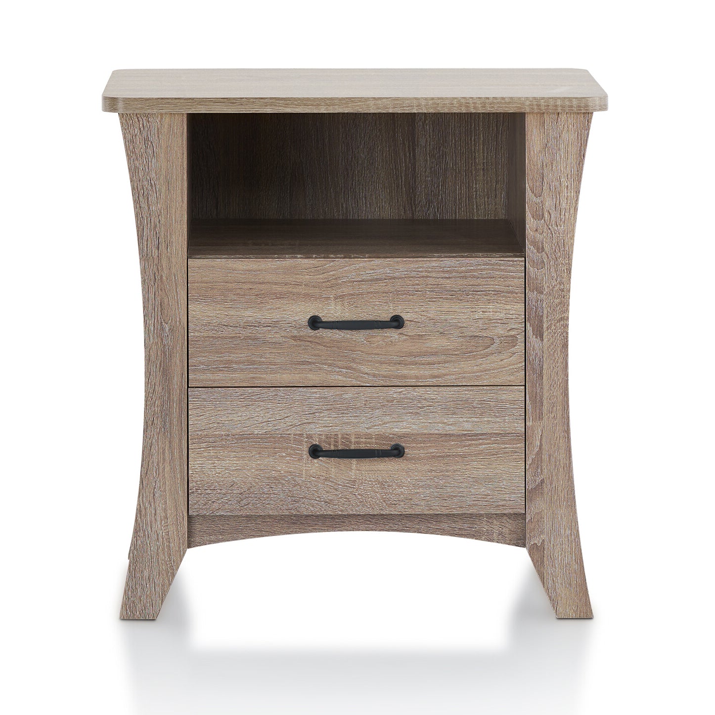 Amplía el espacio de almacenamiento de tu dormitorio con esta mesita de noche Colt con acabado rústico natural. Su amplia superficie superior alberga una lámpara y un reloj, y un estante abierto mantiene libros y pañuelos a mano. También cuenta con dos cajones para guardar libros, revistas y otros artículos esenciales. Esta mesita de noche es perfecta para cualquier dormitorio.