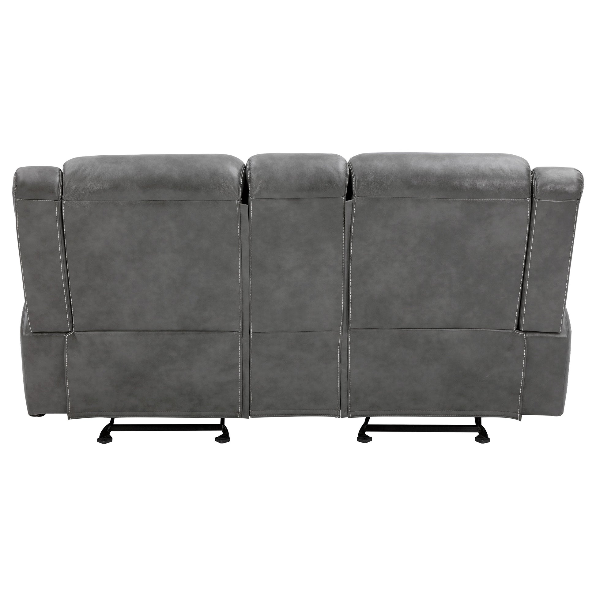 El gris ya no es monótono ni monótono, y este lujoso loveseat con movimiento es prueba de ello. Los respaldos en ángulo cuentan con reposacabezas extra acolchados para una comodidad óptima. Los reposabrazos acolchados y el reposapiernas reclinable ofrecen un lujo extra. La consola central incluye comodidades como dos portavasos y espacio de almacenamiento. Este loveseat viene tapizado en un elegante gris imitación cuero para un aspecto moderno.